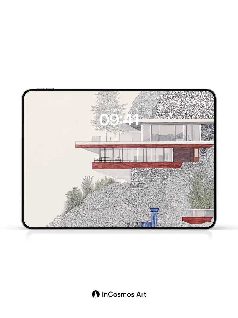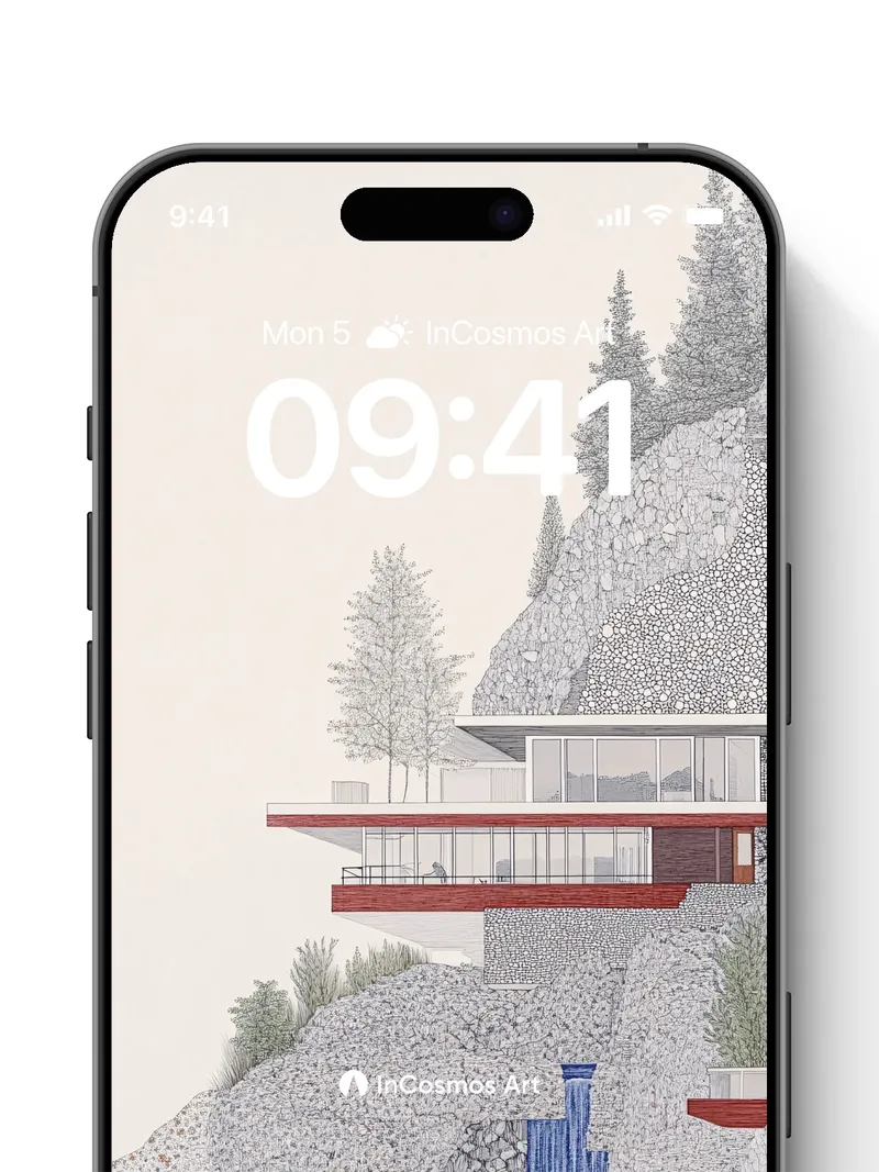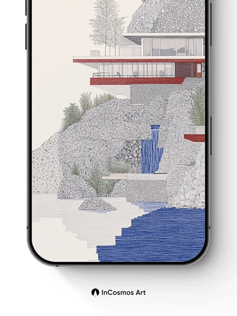 Stone Whisper Wallpaper with Floating Glass Terraces