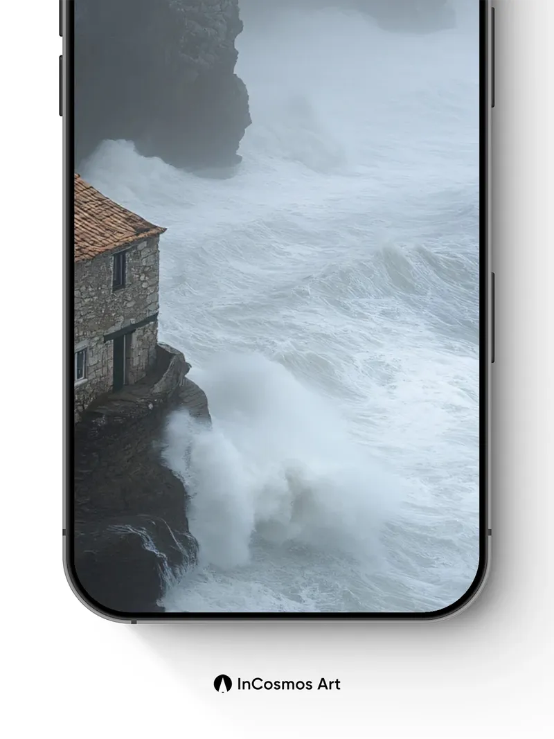 Storm-Clad Stone Wallpaper with Sea's Roar