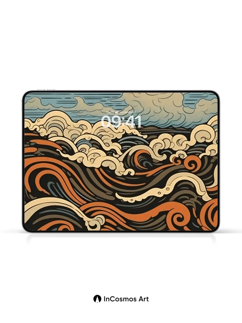 Debug page_description: Did you know the Great Wave off Kanagawa was inspired by a real tsunami that struck Edo Bay? Here, swirling crests of rust and obsidian rise like living beasts beneath a sky of layered clouds, their curves echoing the breath of ancient seas. Each curl pulses with motion, as if time itself is caught mid-surge—your walls become a portal to a mythic ocean where water sings in silence. Share this with your best friend. Send this to your love and swap a matching set. What if the waves could carry your voice across centuries?