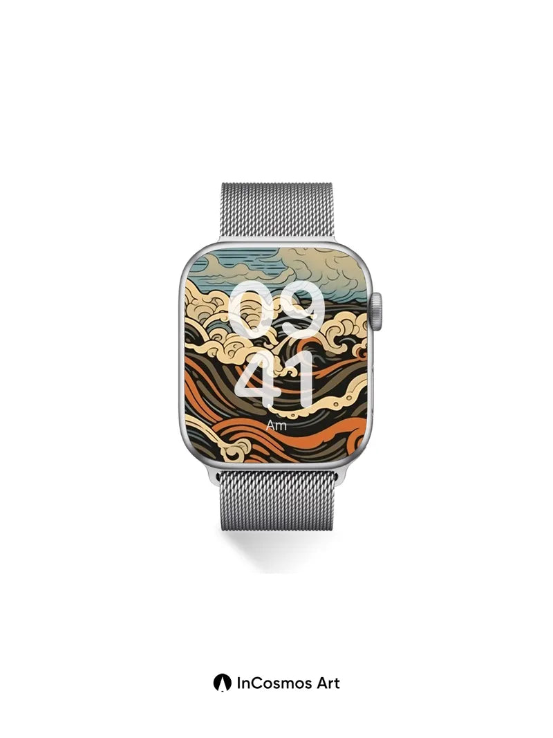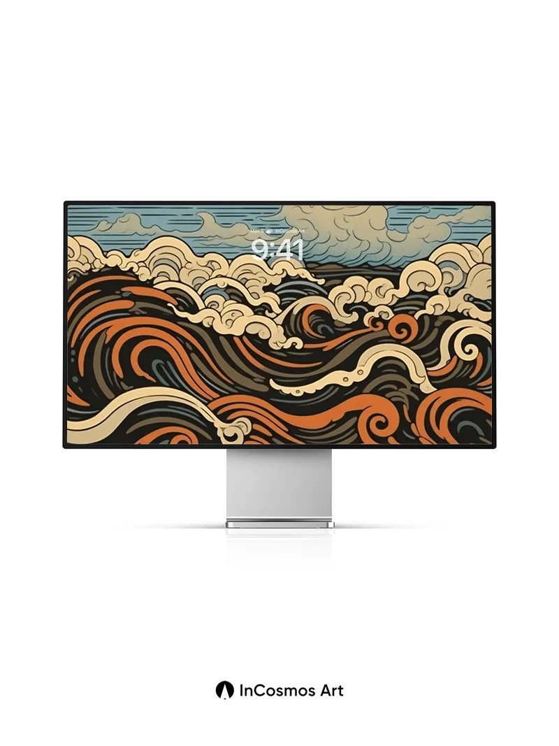 Debug product.metafields.custom.desc: Did you know the Great Wave off Kanagawa was inspired by a real tsunami that struck Edo Bay? Here, swirling crests of rust and obsidian rise like living beasts beneath a sky of layered clouds, their curves echoing the breath of ancient seas. Each curl pulses with motion, as if time itself is caught mid-surge—your walls become a portal to a mythic ocean where water sings in silence.