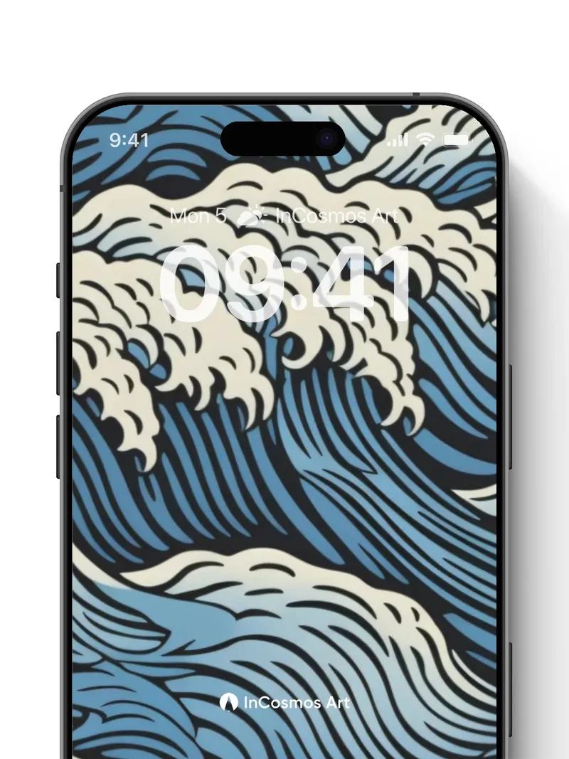 Storm-Tossed Wave Wallpaper in Hokusai Style