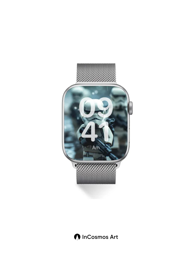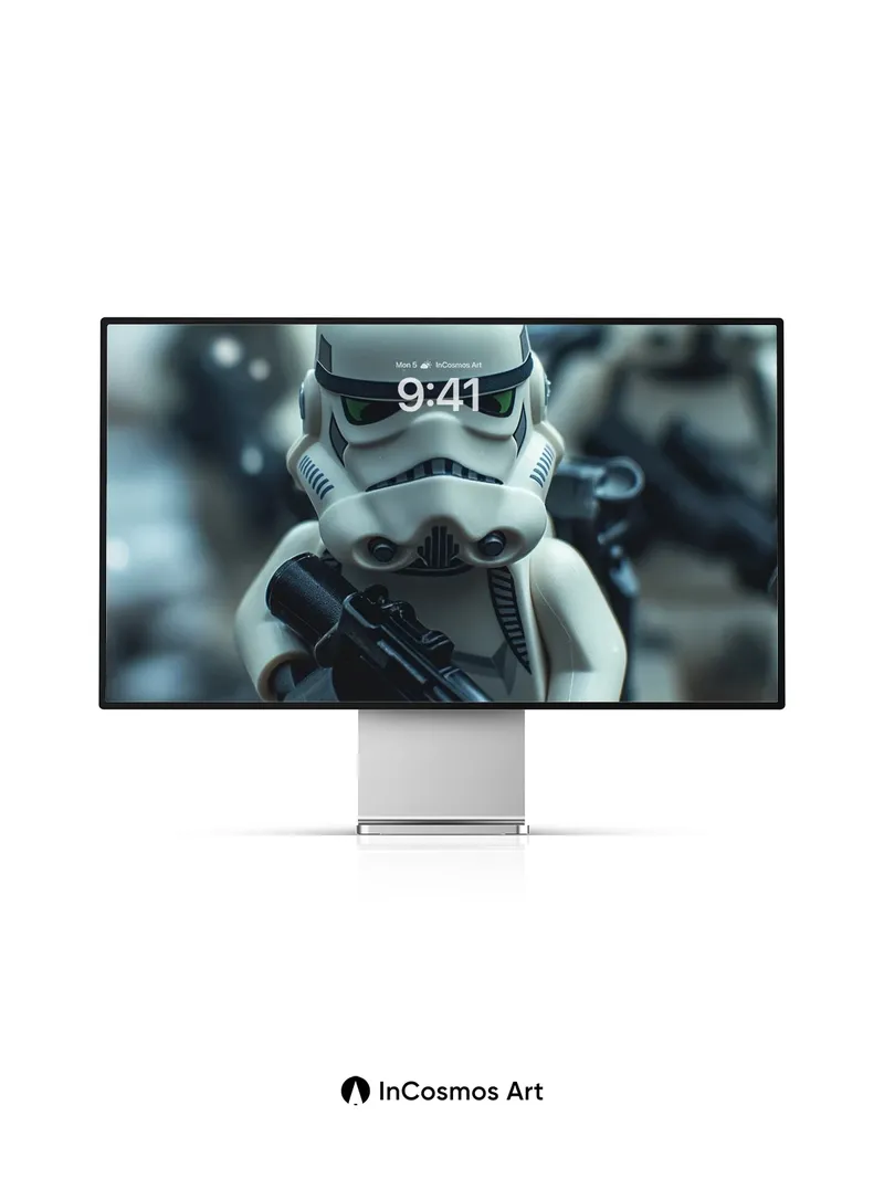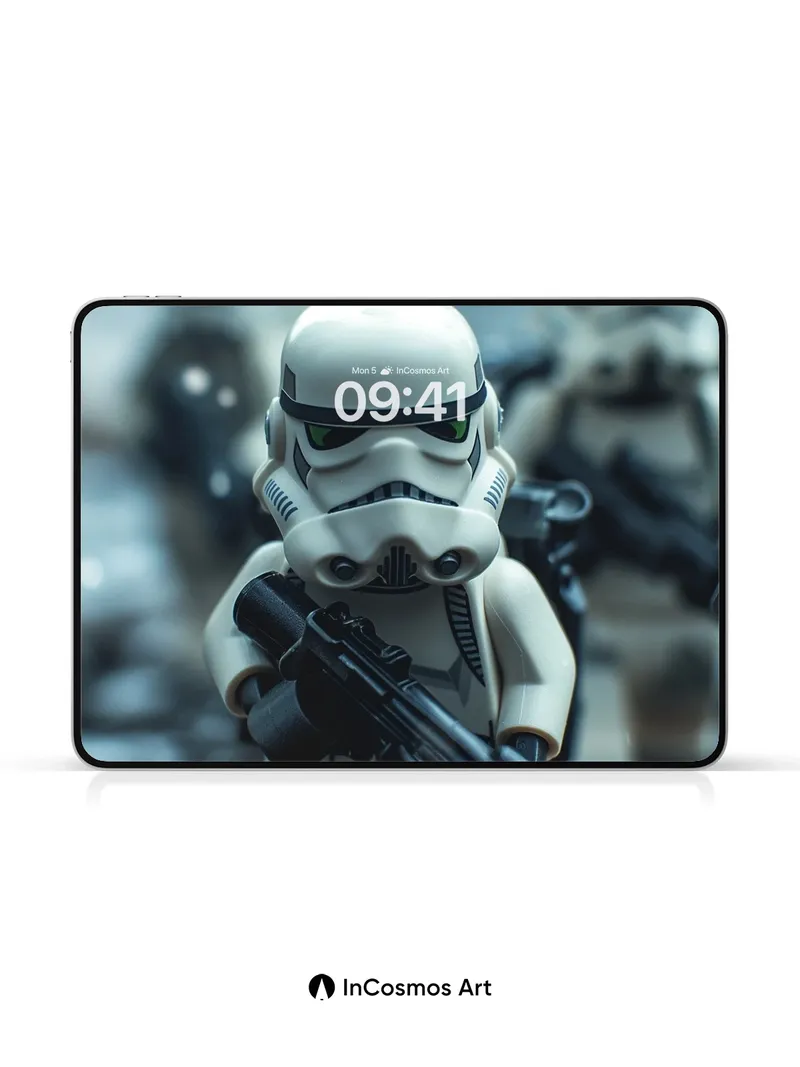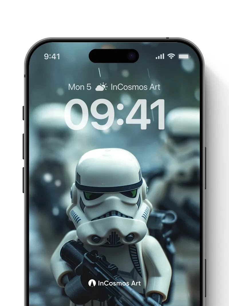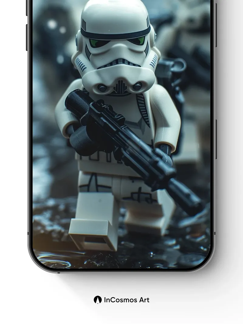 Debug product.metafields.custom.desc: Did you know LEGO minifigures were originally designed to be used in stop-motion animation? Here, a stormtrooper stands knee-deep in rain-soaked mud, its helmet reflecting the dim glow of distant battlefields. Light crawls over the glossy plastic, turning each droplet into a tiny lens that distorts the world beyond. The blurred figures behind it fade like memories—frozen in time, yet ready to move.