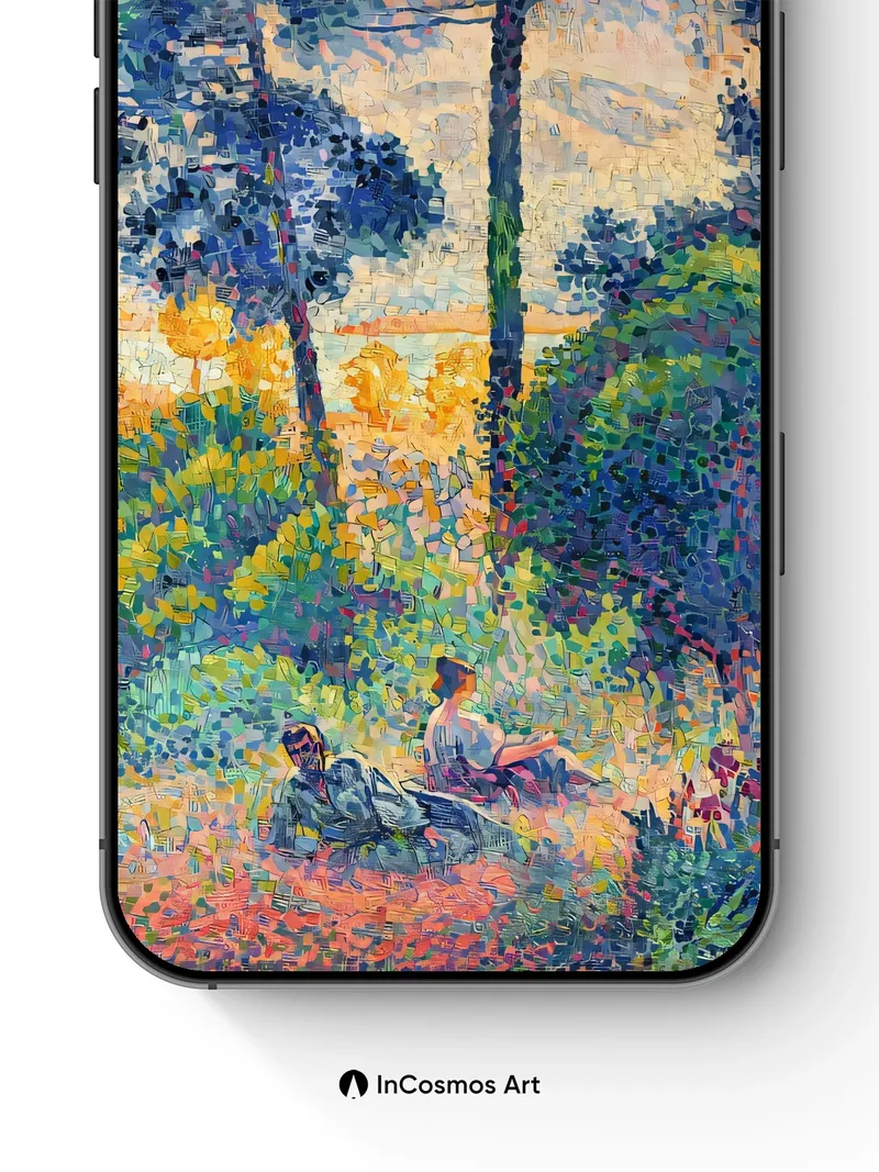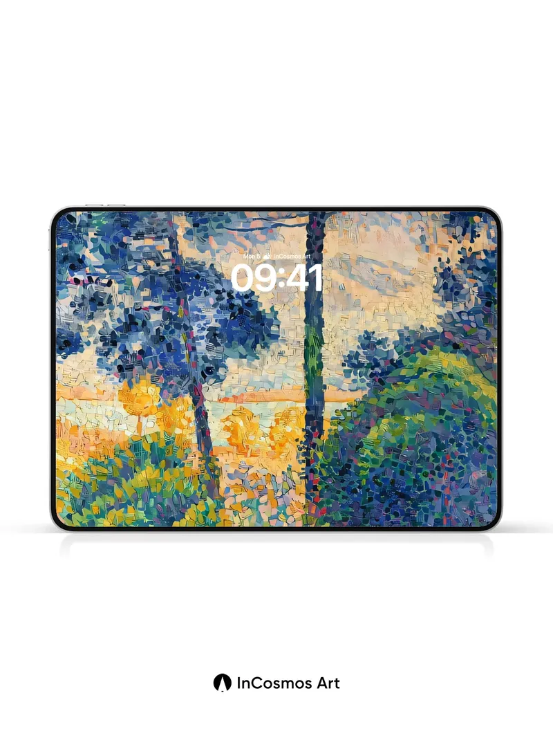 Sun-Dappled Forest Wallpaper with Pointillist Light