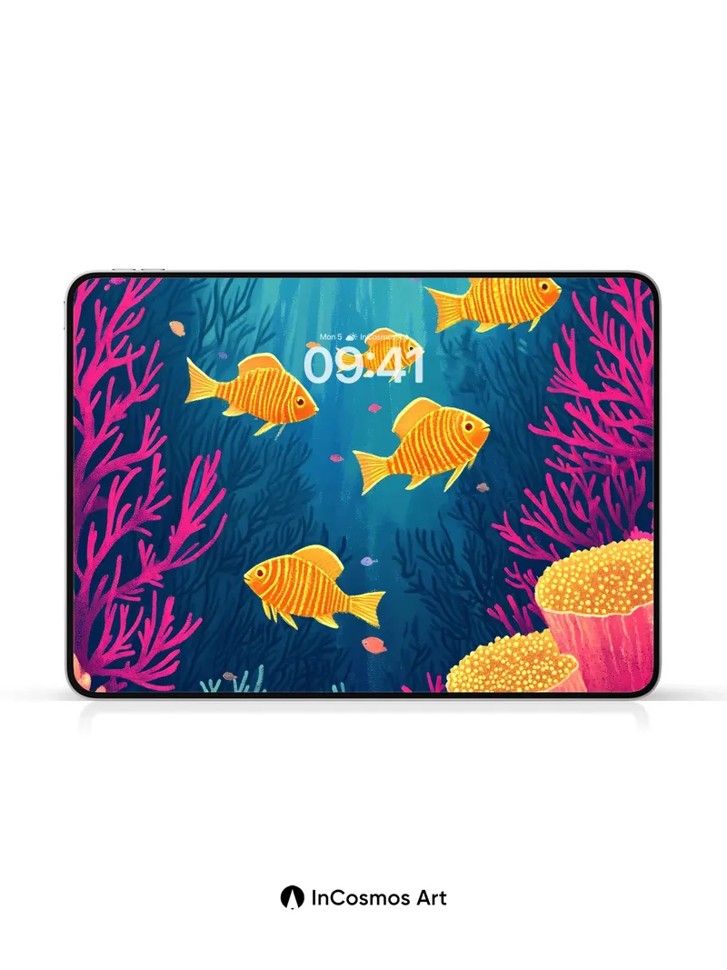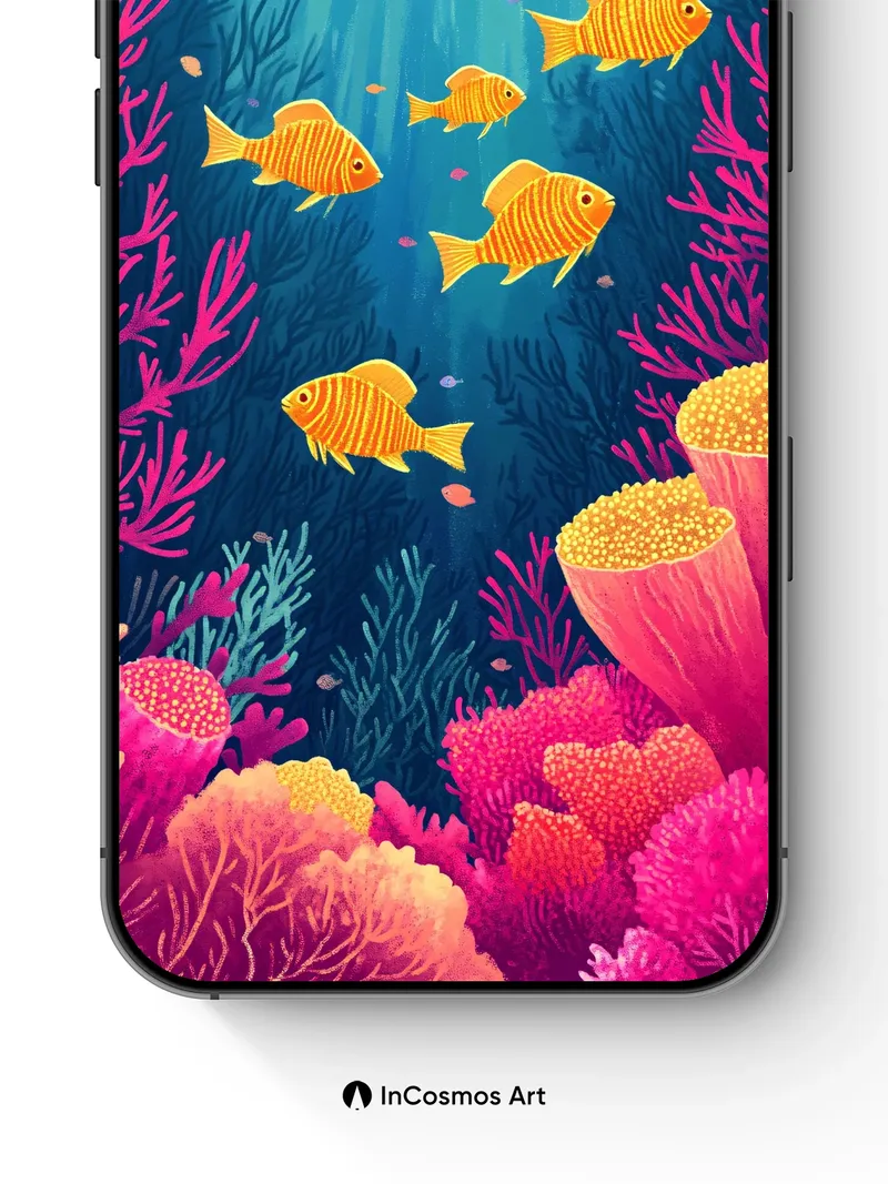 Sunlit Coral Reefs Wallpaper with Golden Fish