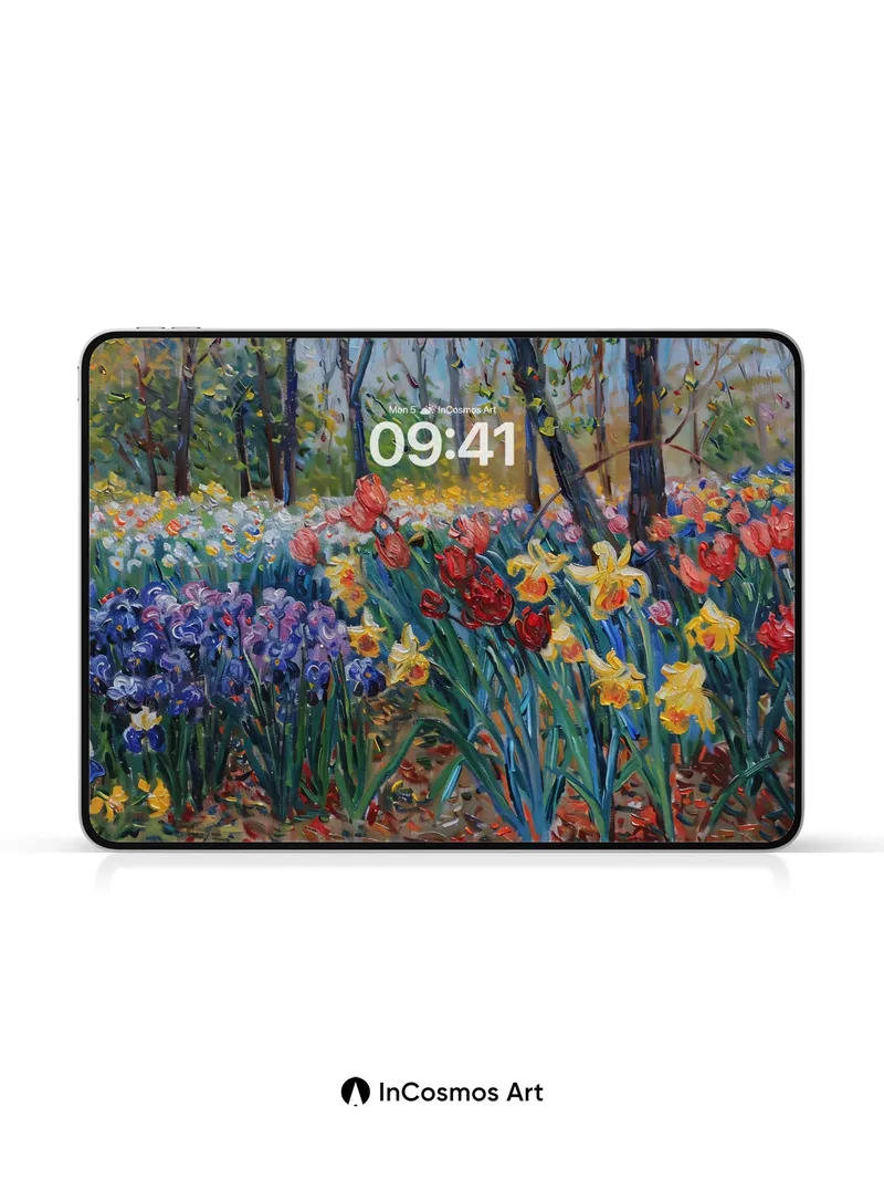 Sunlit Garden Wallpaper with Impressionist Brushwork