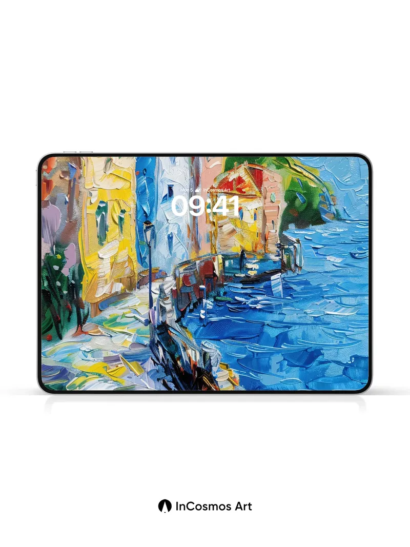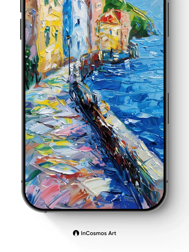 Sunlit Harbor Wallpaper with Impasto Texture