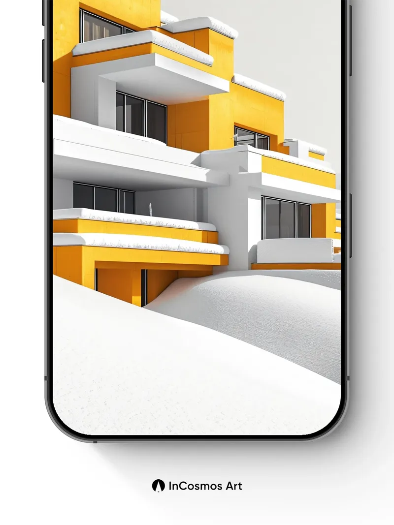 Sunny Geometry Wallpaper with Snow-Capped Edges