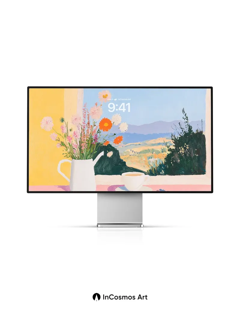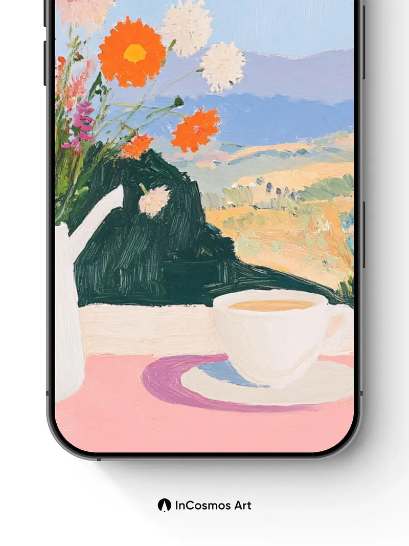 Debug product.metafields.custom.desc: Did you know that light refracts differently through glass depending on its thickness, creating subtle shifts in color and depth? Here, sunlight spills across a pink table like honey, warming the white pitcher and casting soft shadows that dance just beyond the flowers. The distant hills breathe under a pale blue sky, while wild blooms lean toward the open window as if whispering secrets to the breeze.