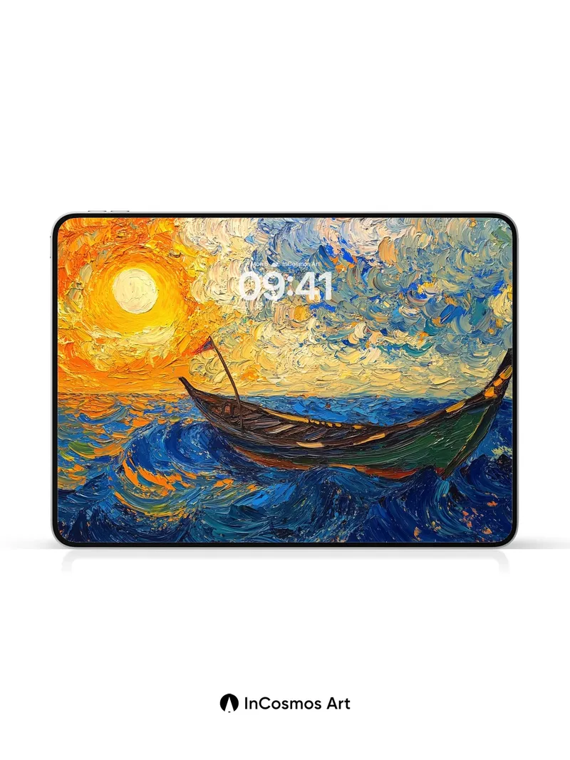 Sunset Drift Wallpaper with Van Gogh Swirls
