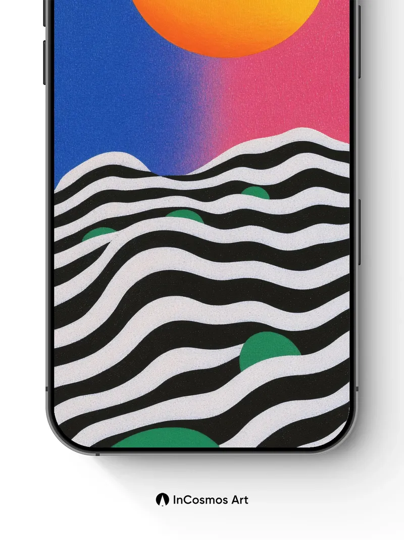 Sunset Wave Wallpaper with Geometric Hills