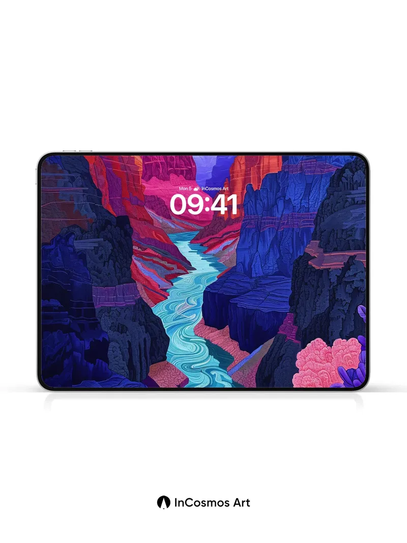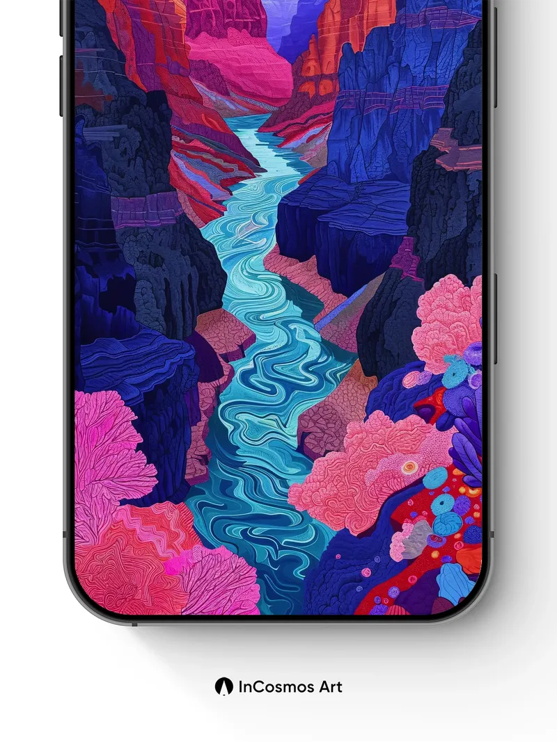 Surreal Canyon Wallpaper with Cosmic River Flow