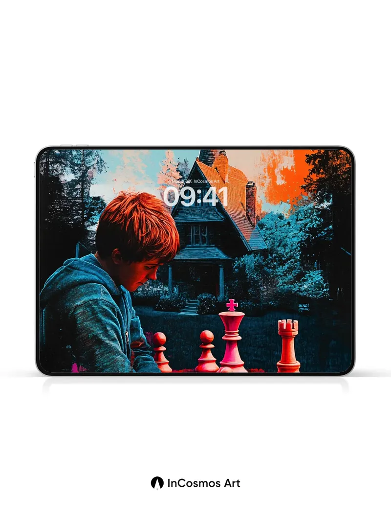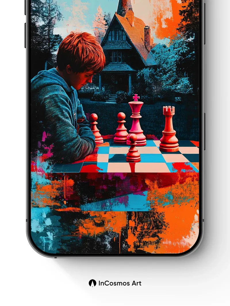 Surreal Chess Garden Wallpaper with Haunting Colors