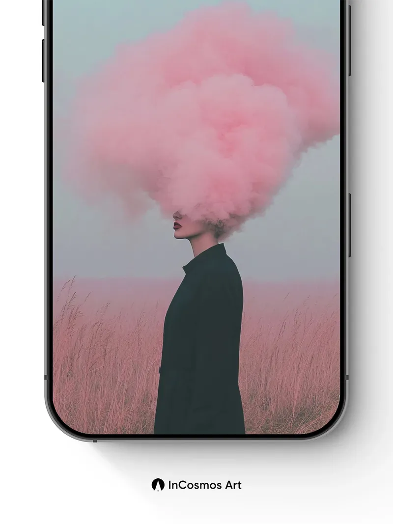 Surreal Cloud Head Wallpaper with Ethereal Pink Smoke