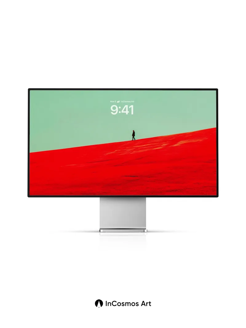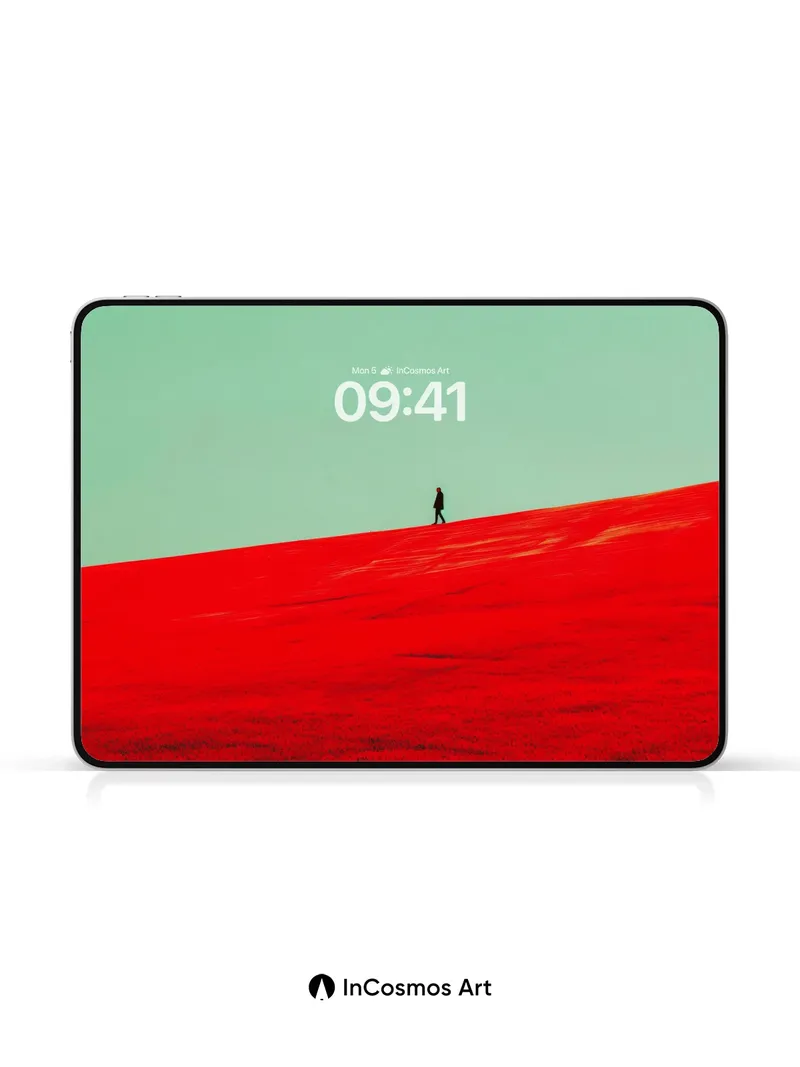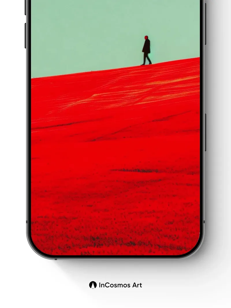 Surreal Crimson Slope Wallpaper with Solitary Walker