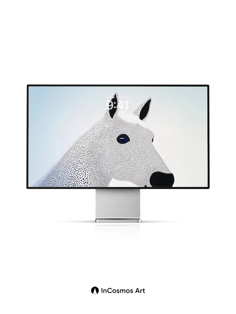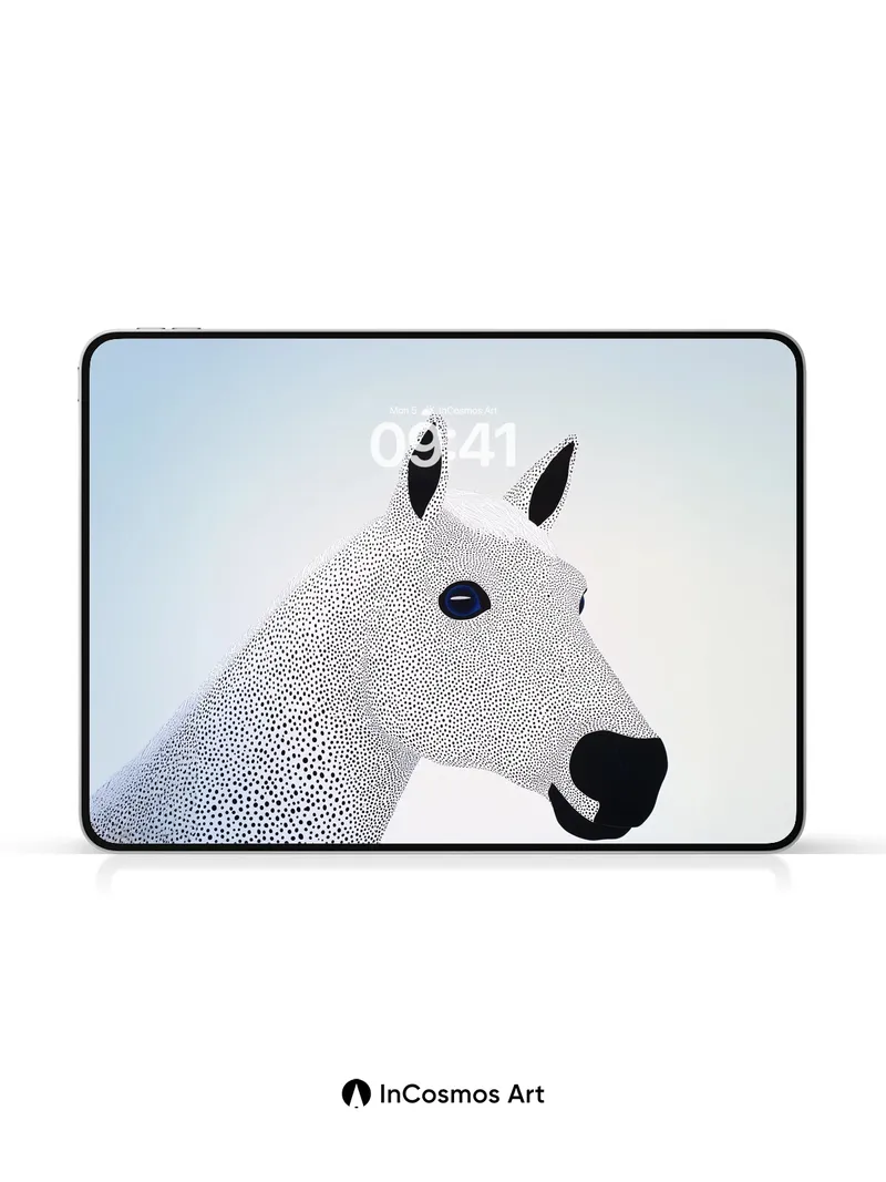 Surreal Dot-Work Horse Wallpaper with Cosmic Gaze