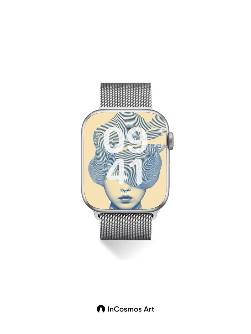 Did you know that the human brain contains over 100 billion neurons, each a thread in a vast neural tapestry? Here, light crawls over intricate blue lines that form a cloud-like veil over a face, where texture breathes like thought and silence hums through every curve. The collar of the shirt echoes the same hypnotic pattern, merging identity with imagination.