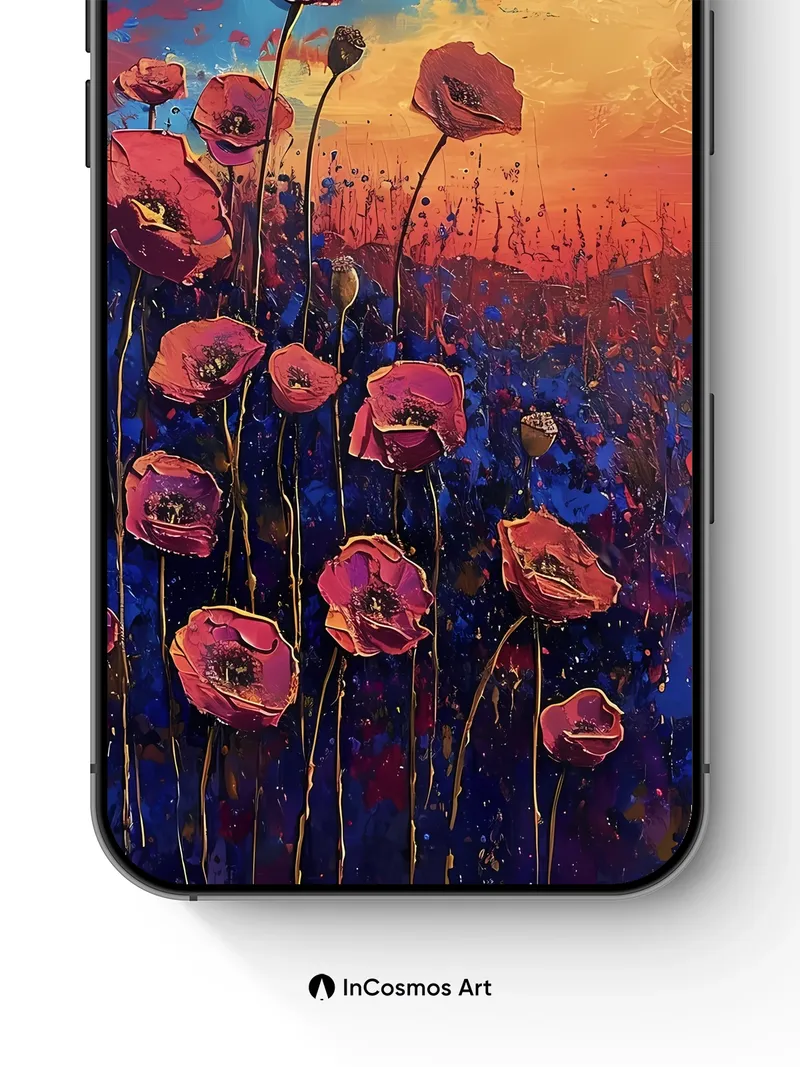 Surreal Poppy Field Wallpaper with Golden Moonlight