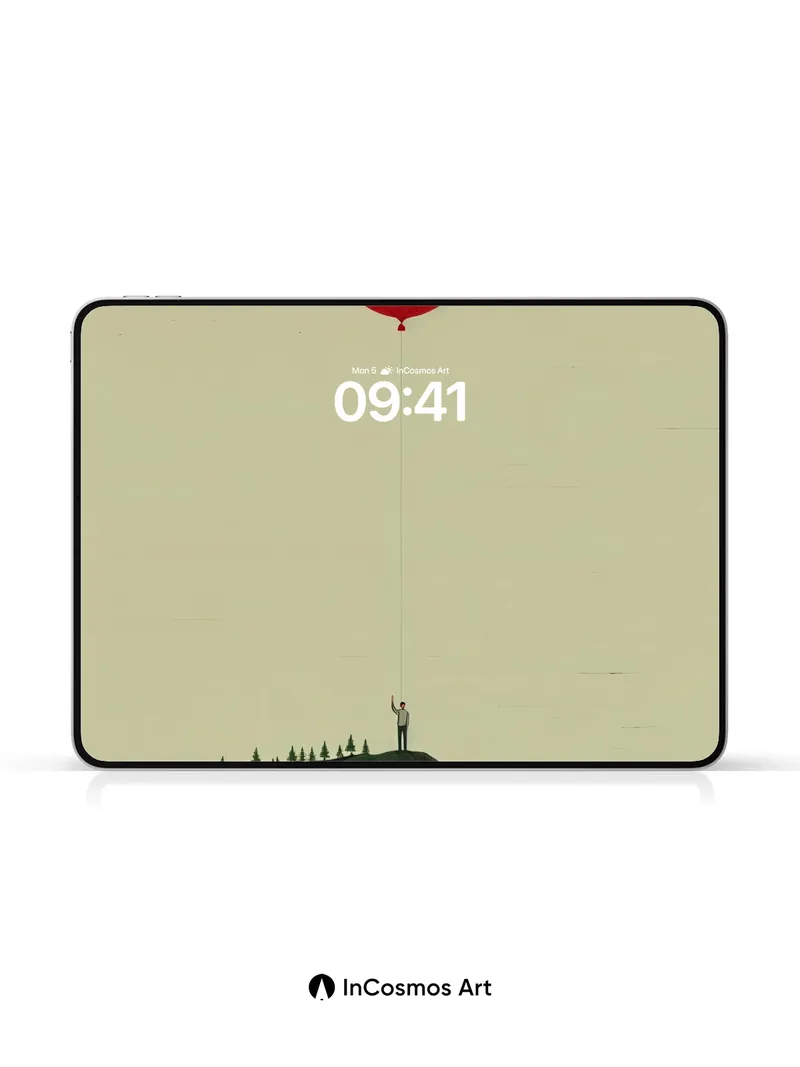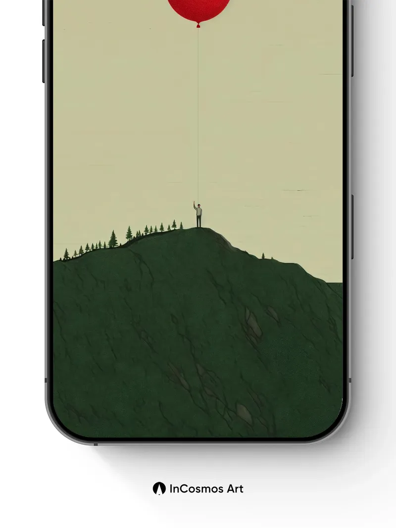 Surreal Solitude Wallpaper with Floating Red Balloon