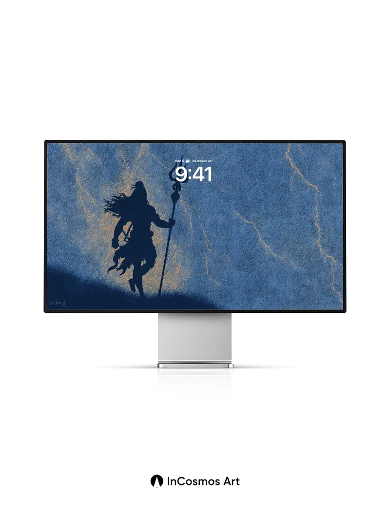 Debug product.metafields.custom.desc: Did you know ancient seafarers once carved tridents into ship prows to ward off storms? This shadowed figure stands defiant against a sky where lightning cracks like frozen rivers, its form etched in midnight against a textured canvas of storm-washed stone. You feel the weight of myth in every contour, as if the wind itself breathes through the silhouette’s flowing hair and outstretched arm.