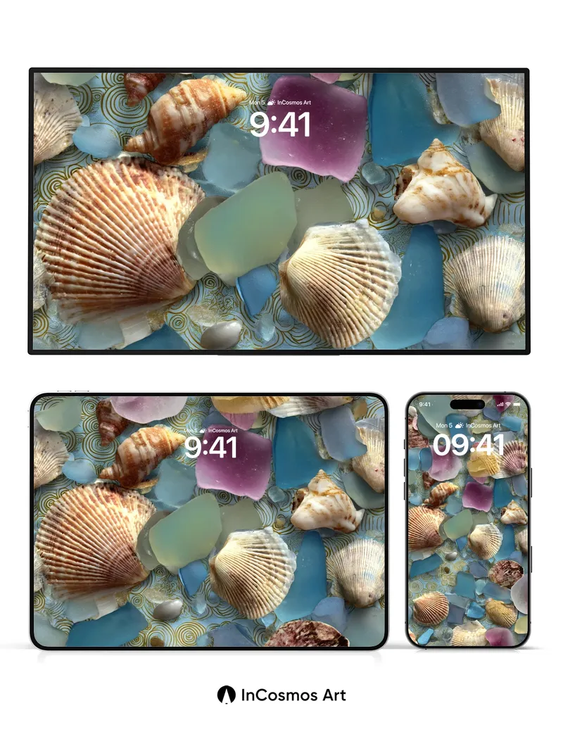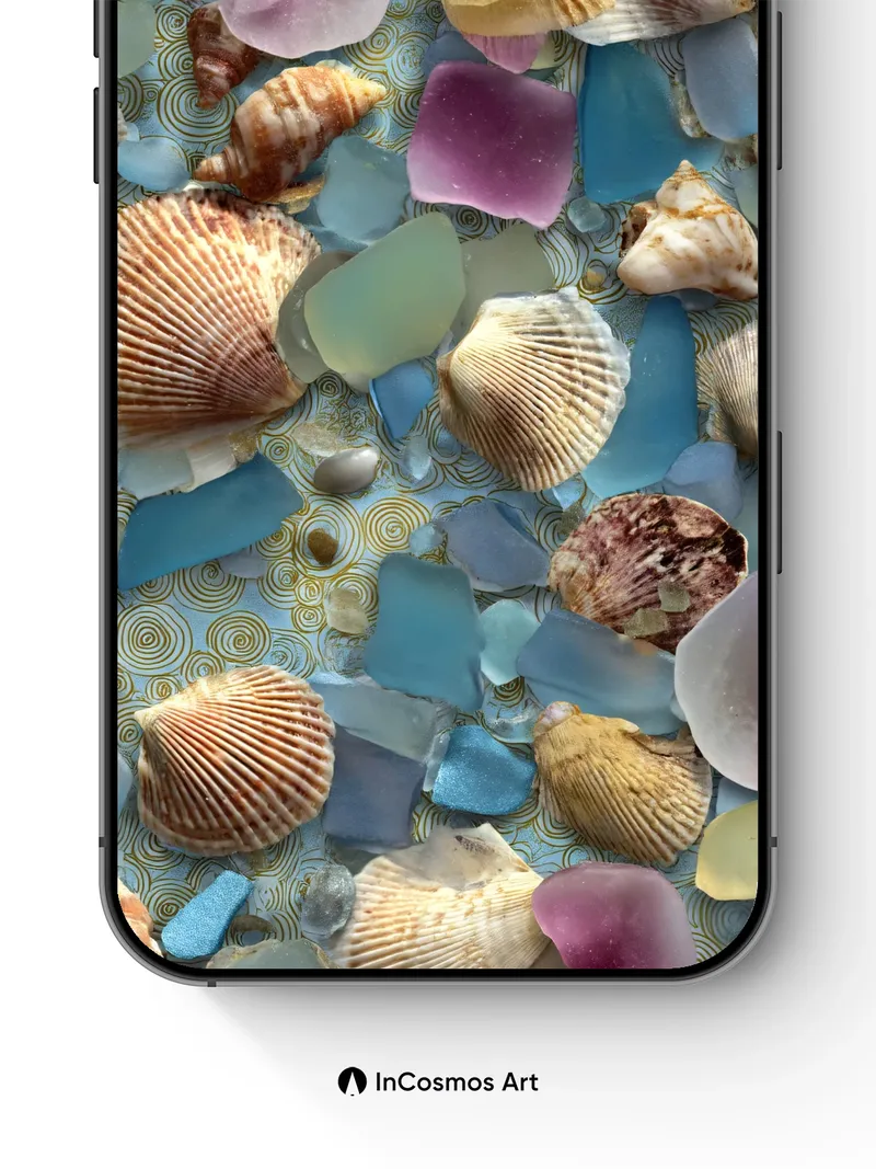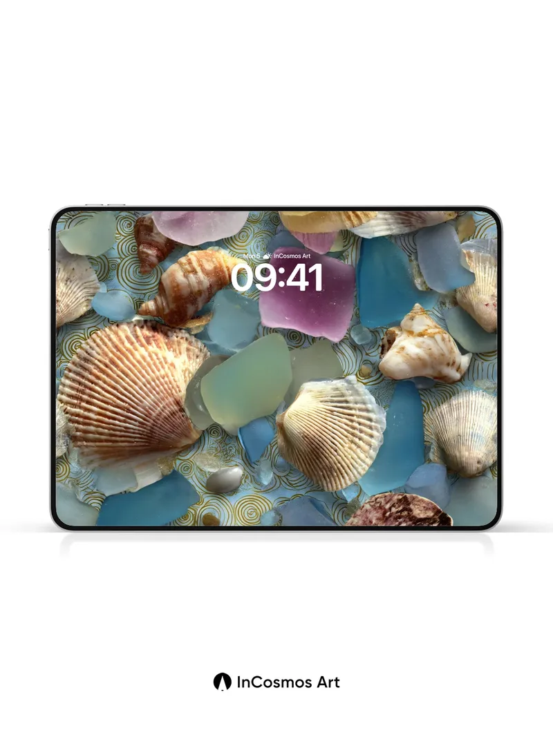 Tide-Washed Glass Wallpaper with Shell Whispers
