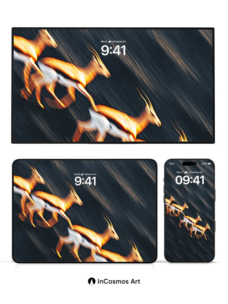 Velvet Motion Wallpaper with Golden Antelope Trails
