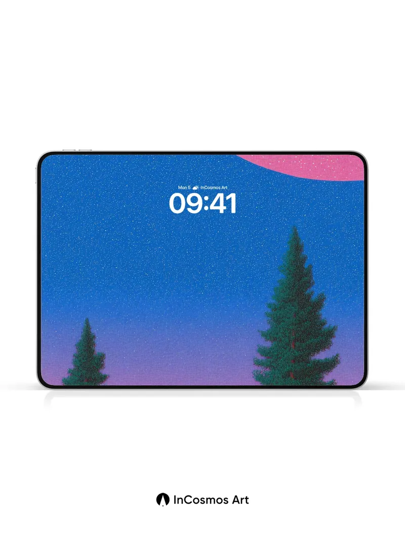 Velvet Night Sky Wallpaper with Cosmic Pine