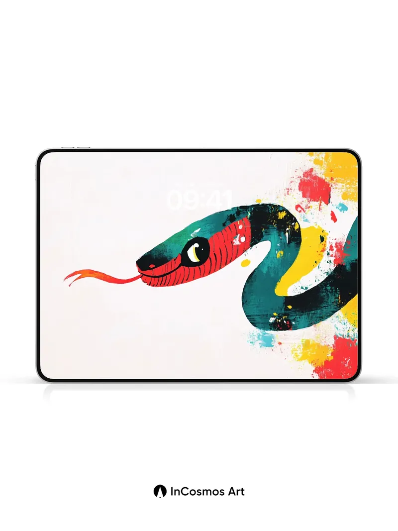 Vibrant Serpent Wallpaper with Paint-Splashed Energy