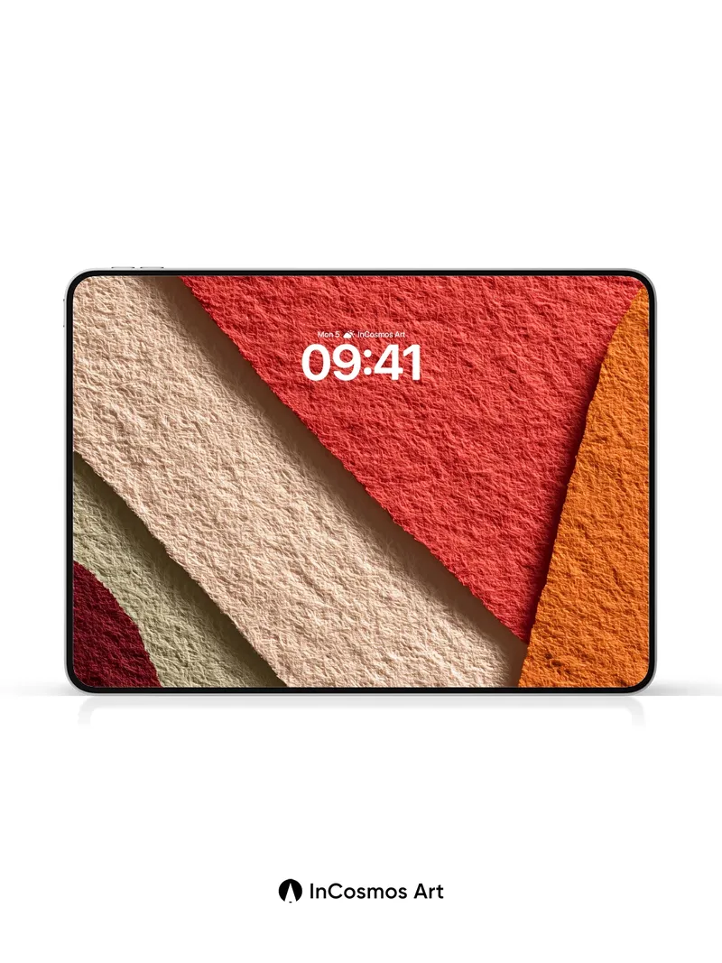 Debug page_description: Did you know textile weavers in ancient Persia used hand-dyed wool to create color fields that shifted with the light? Here, each hue breathes like fabric folded into geometric forms—rust-red, terracotta, and olive-green meet in a tactile dance where texture feels alive under your gaze. The soft shadows between layers suggest movement, as if the colors are slowly unfolding from a quiet memory. Share this with your best friend. Send this to your love and swap a matching set. What if every wall could whisper the story of its making?