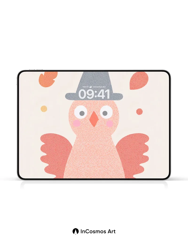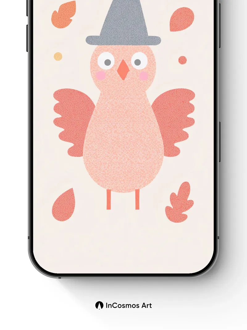 Whimsical Autumn Bird Wallpaper with Floating Leaves
