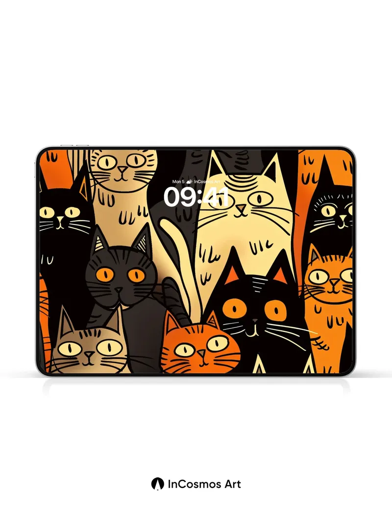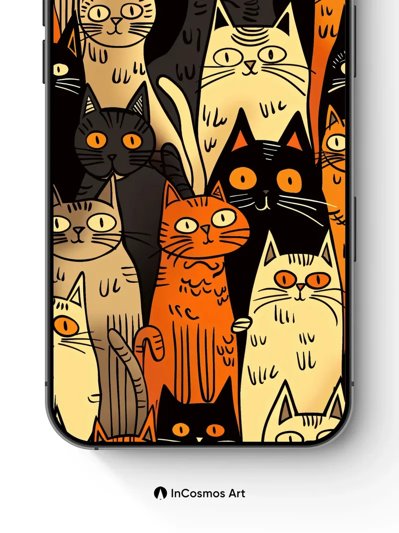 Whimsical Cat Crowd Wallpaper with Playful Patterns
