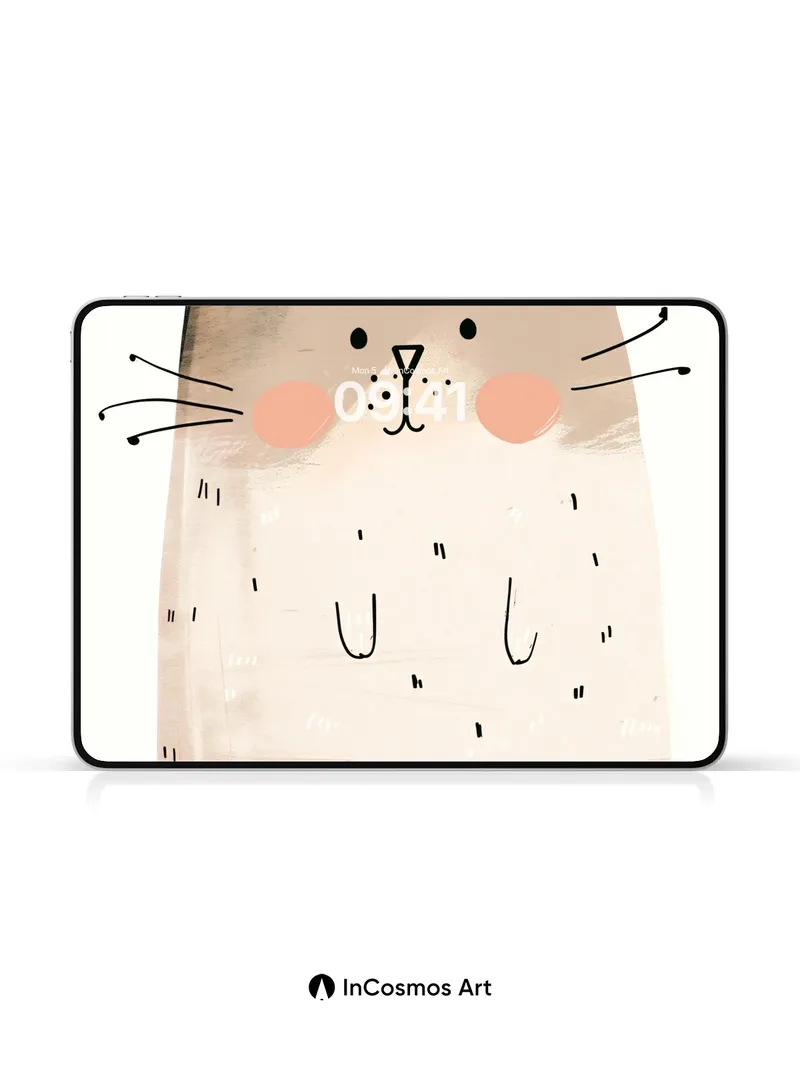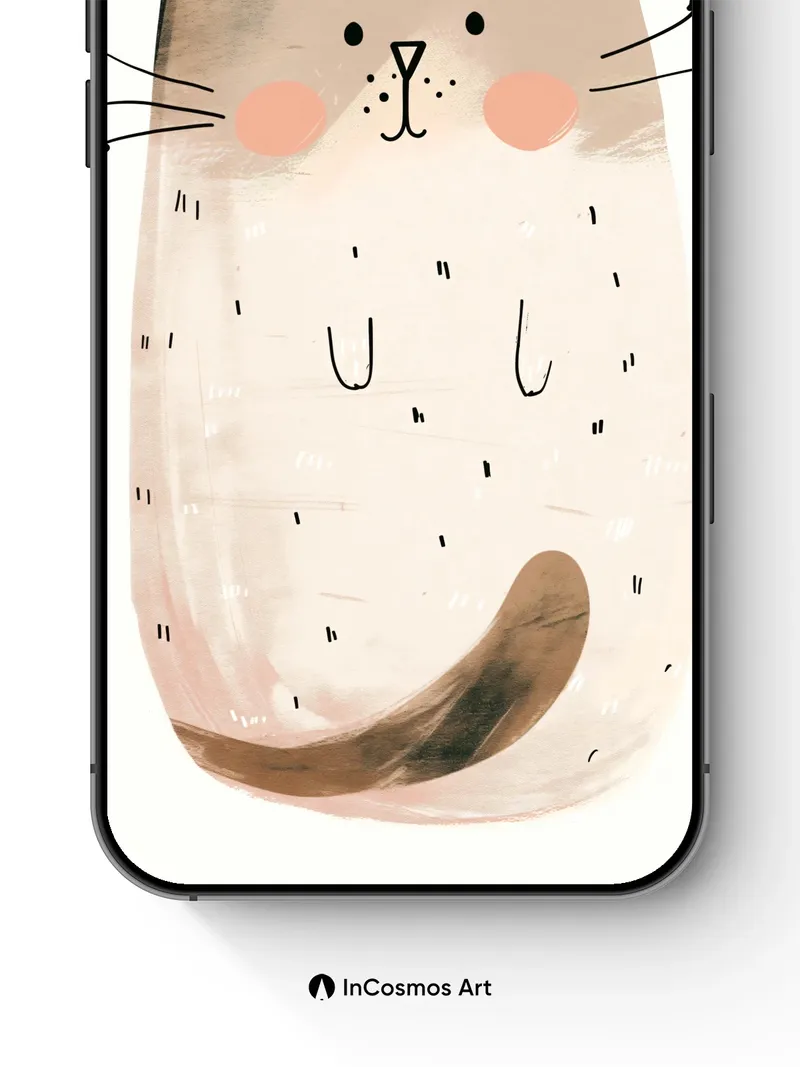 Whimsical Cat Wallpaper with Soft Brushstrokes