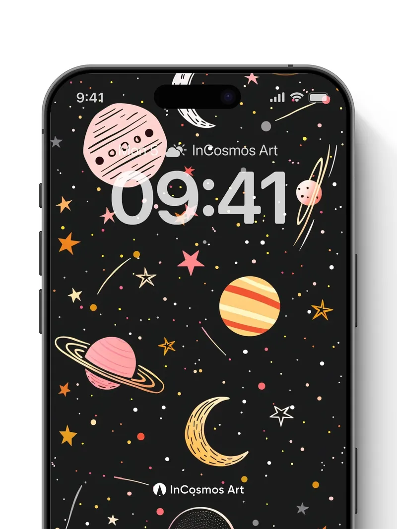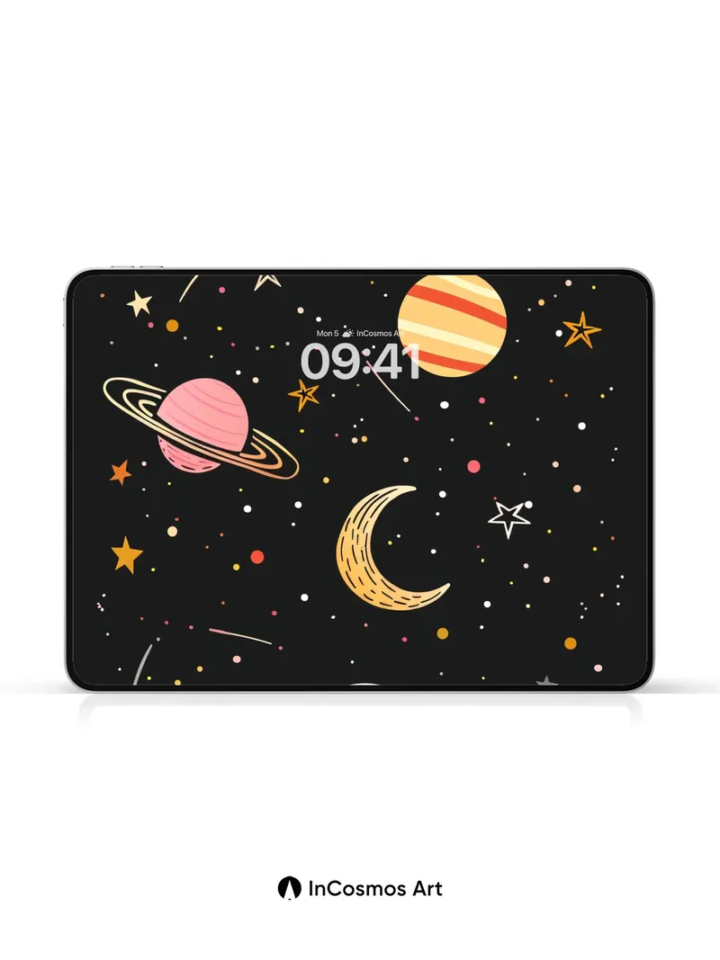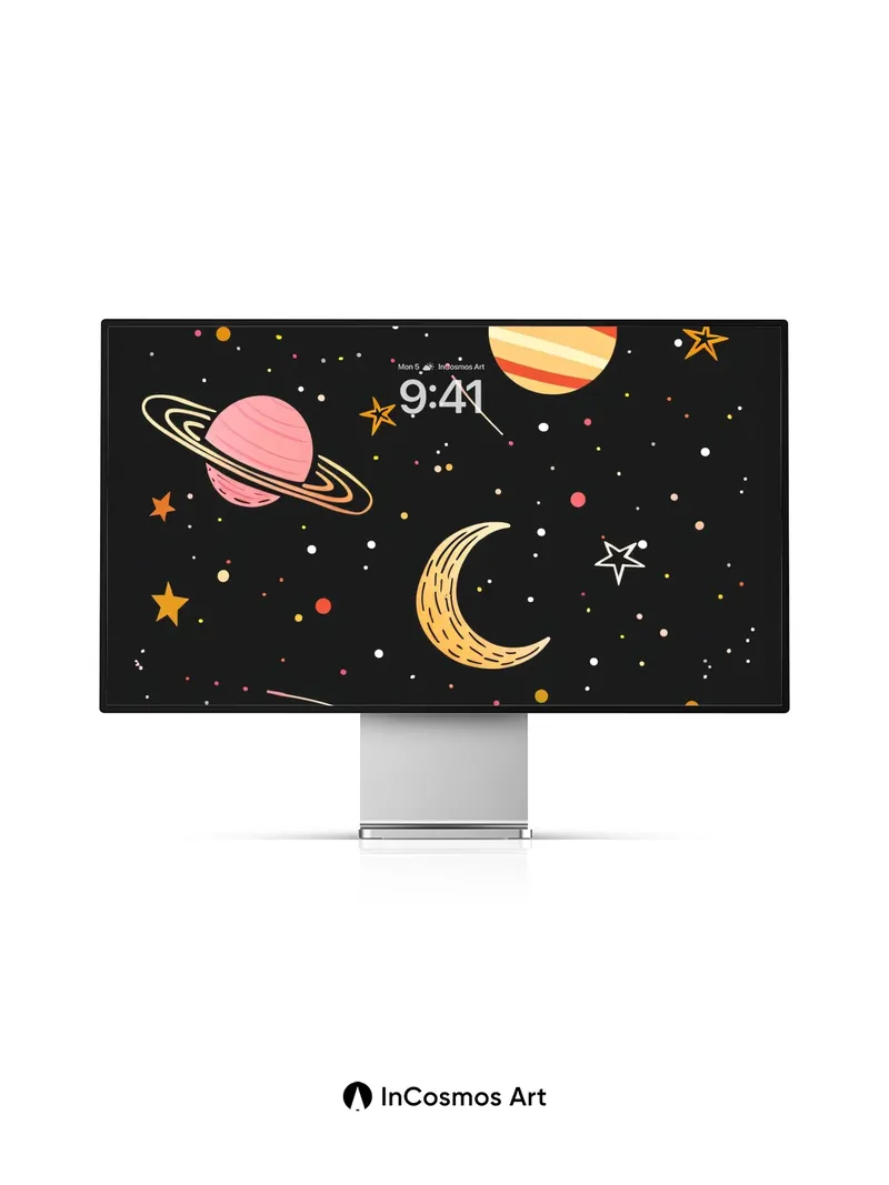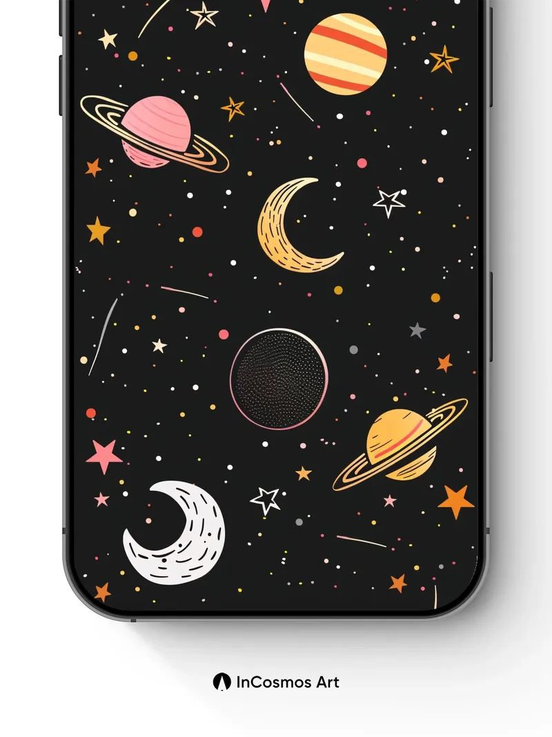 Whimsical Cosmos Wallpaper with Playful Planets