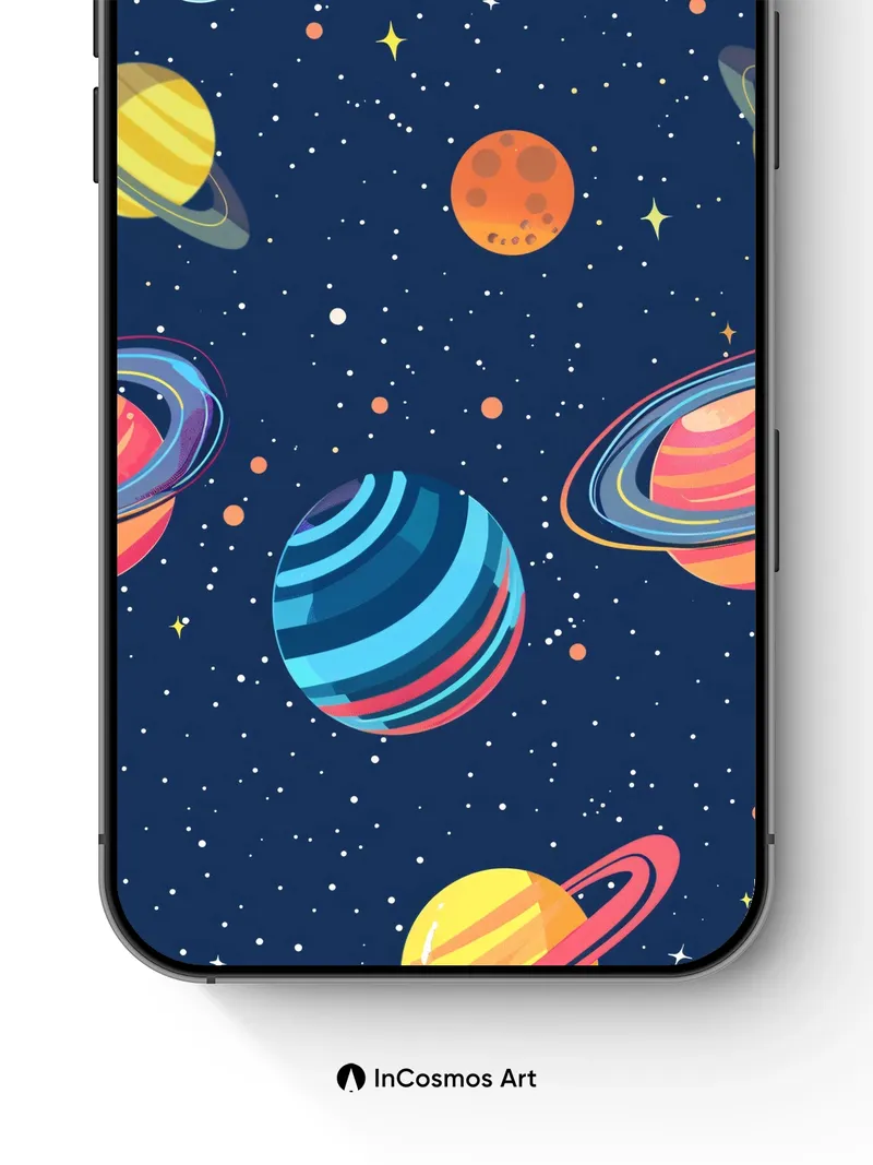 Whimsical Cosmos Wallpaper with Ringed Planets