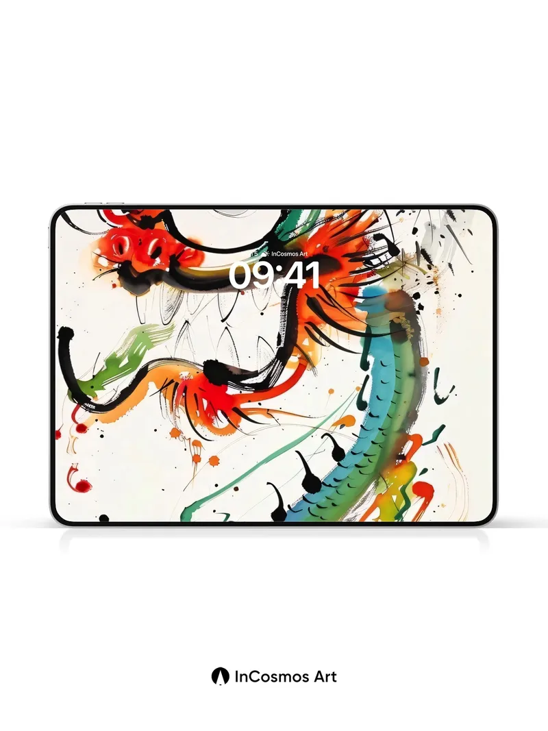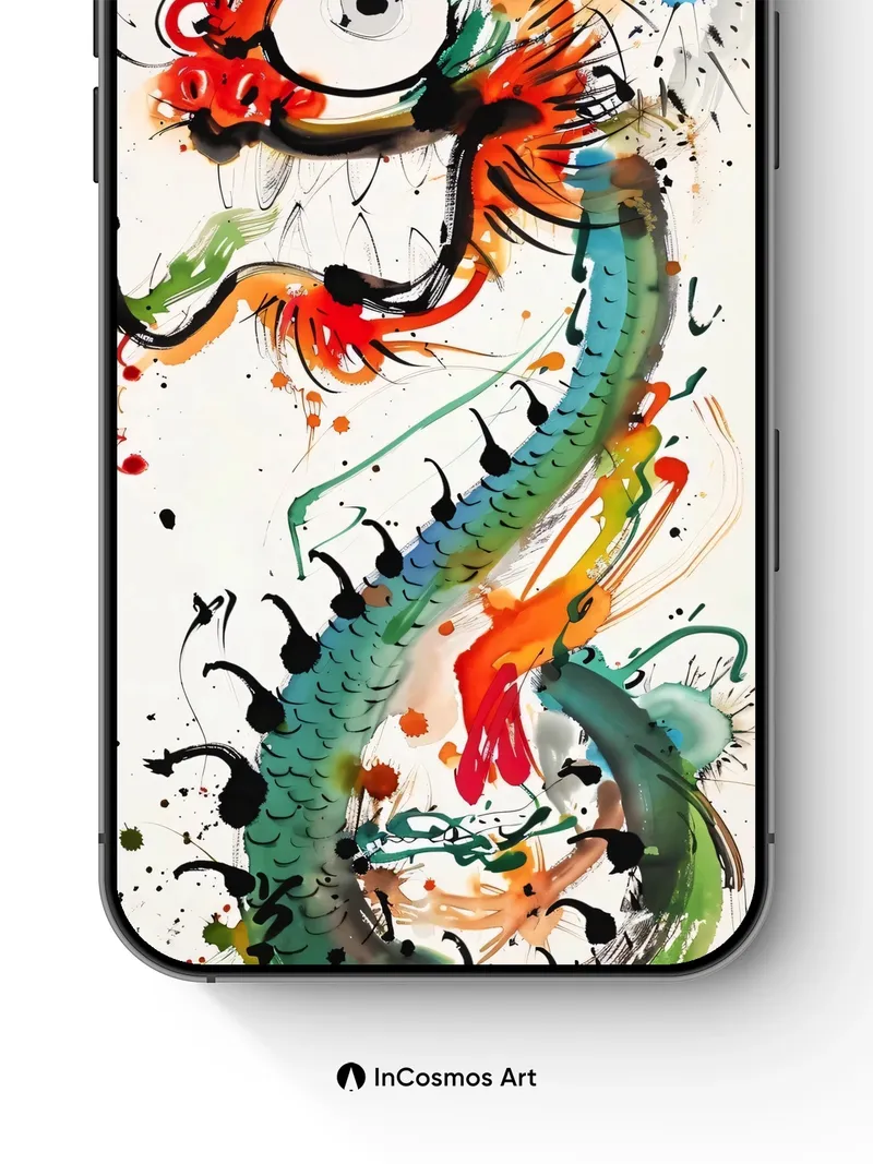 Whimsical Dragon Wallpaper with Ink Splatter Energy