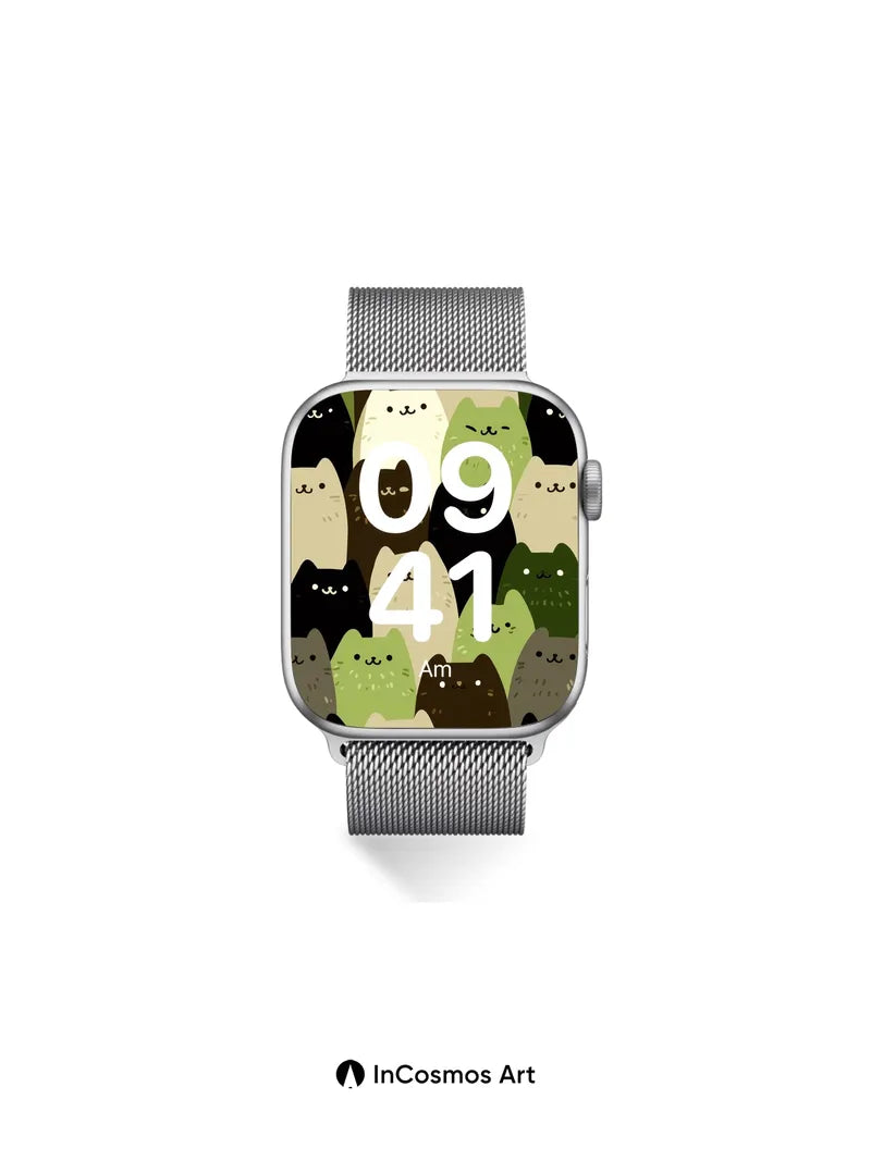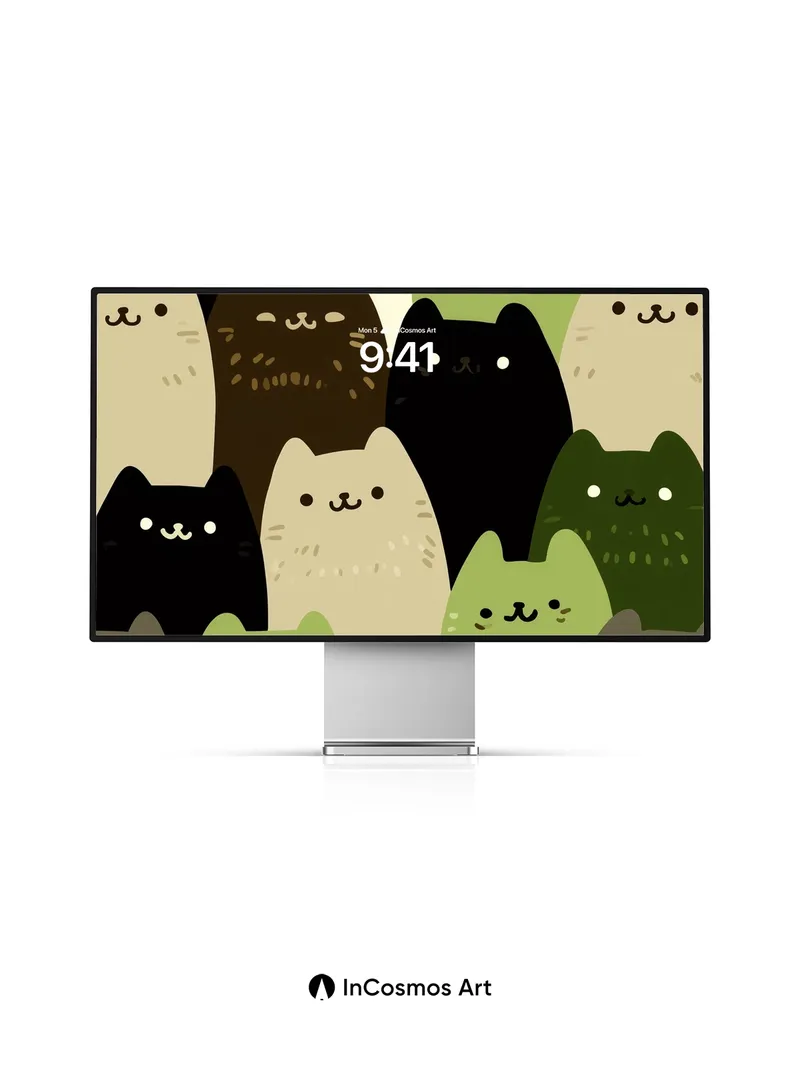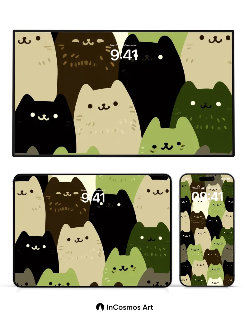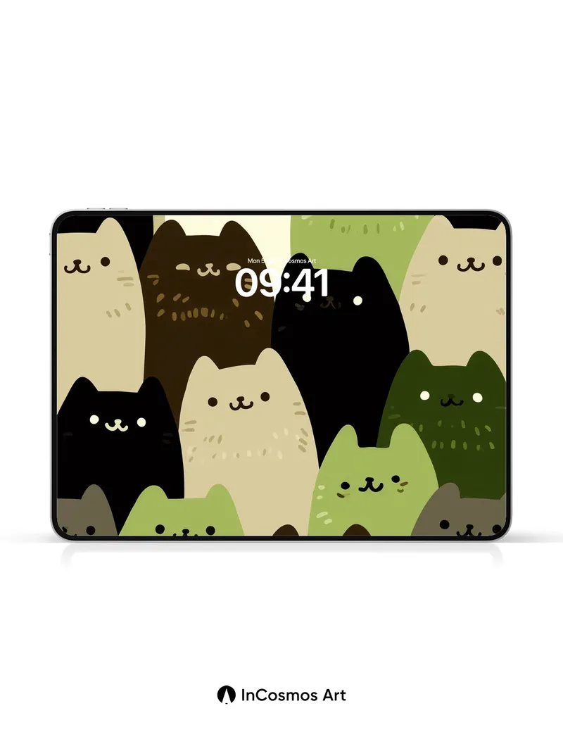 Debug product.metafields.custom.desc: Did you know cats have been domesticated for over 9,000 years, yet their quiet gaze still holds ancient mystery? This pattern breathes life into a sea of stylized felines, each one a soft silhouette with gentle whiskers and tiny noses, stacked like a living mosaic. The muted greens, creams, and deep blacks ripple across the canvas like a forest of purring shadows, where every cat is both individual and part of a greater calm.