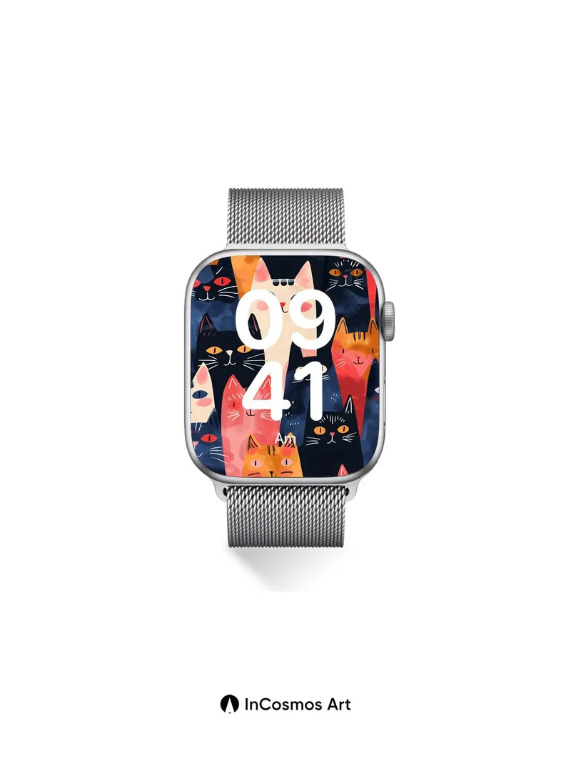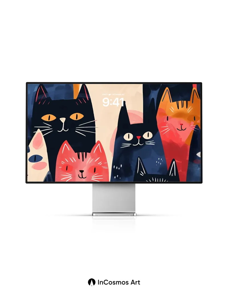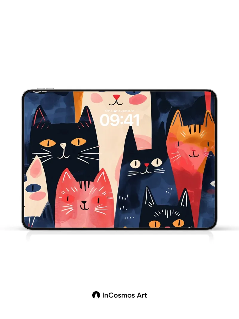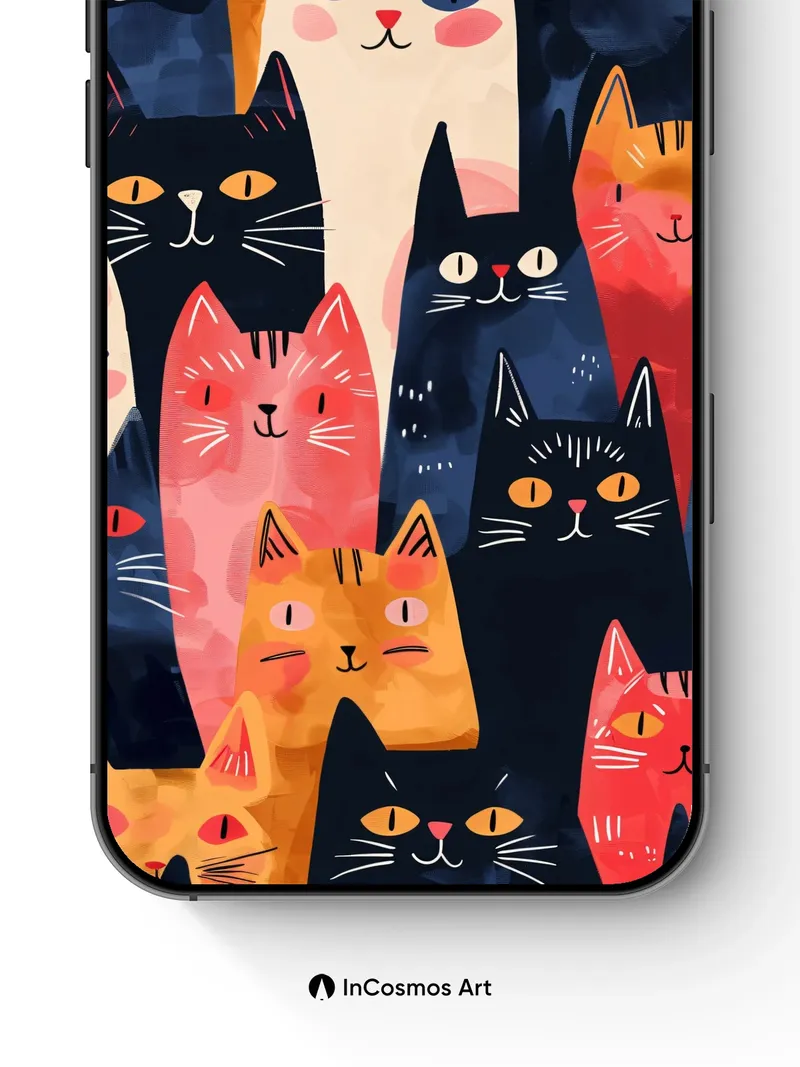 Whimsical Feline Parade Wallpaper with Playful Faces