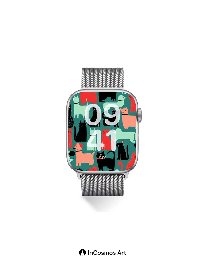 Debug page_description: Did you know cats have been depicted in art for over 4,000 years, often as guardians of sacred spaces? Here, they float like silhouettes across a teal canvas, their forms stitched in bold reds, soft mint, and midnight black—each one a quiet rebel in a world of endless curiosity. Their eyes hold secrets, tails curl like question marks, and every glance feels like a secret shared between you and the wall. Share this with your best friend. Send this to your love and swap a matching set. What if your walls could purr?