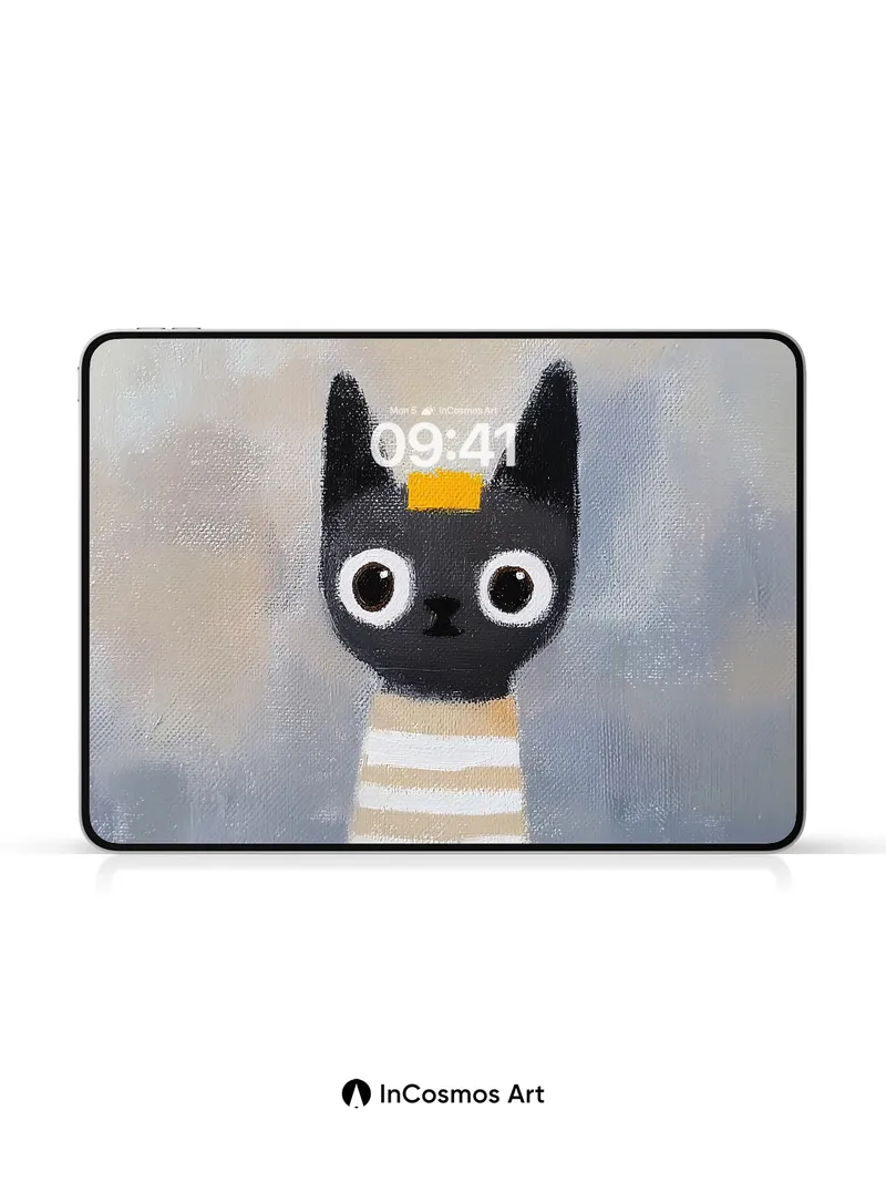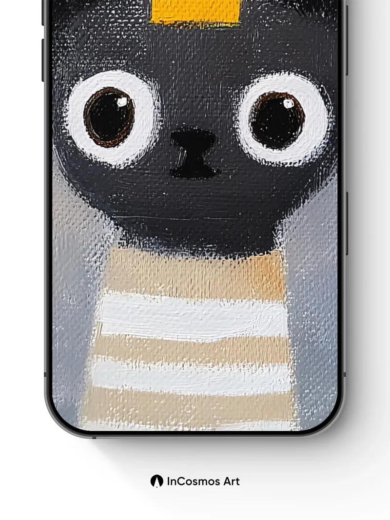Whimsical Feline Wallpaper with Striped Neck