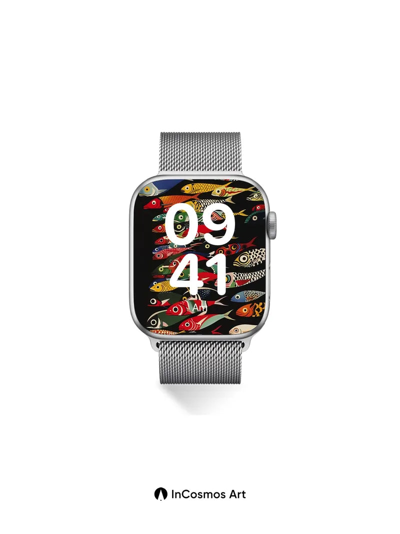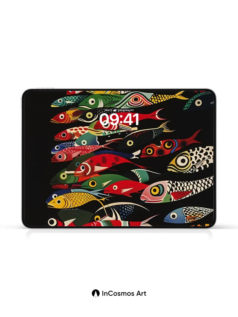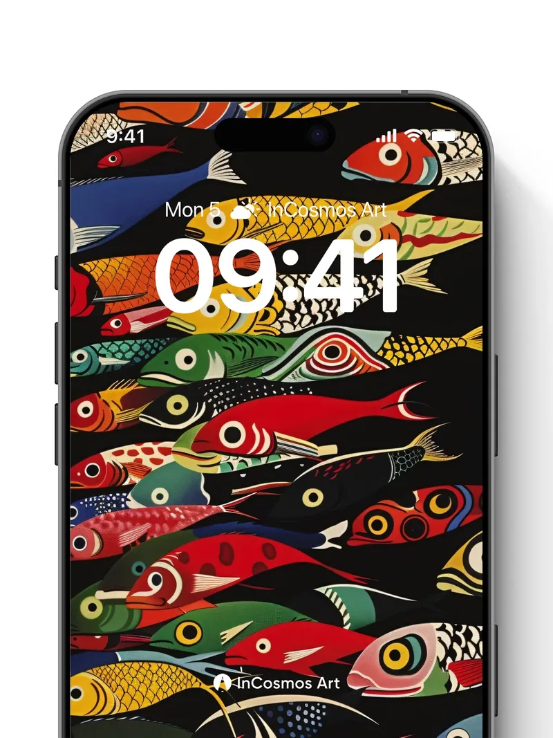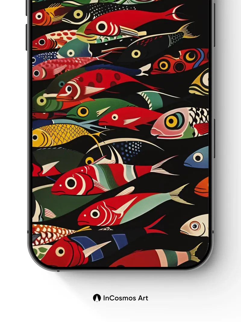 Whimsical Fish Swarm Wallpaper with Bold Patterns