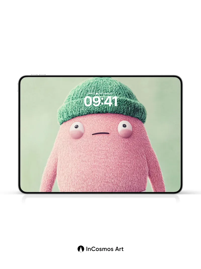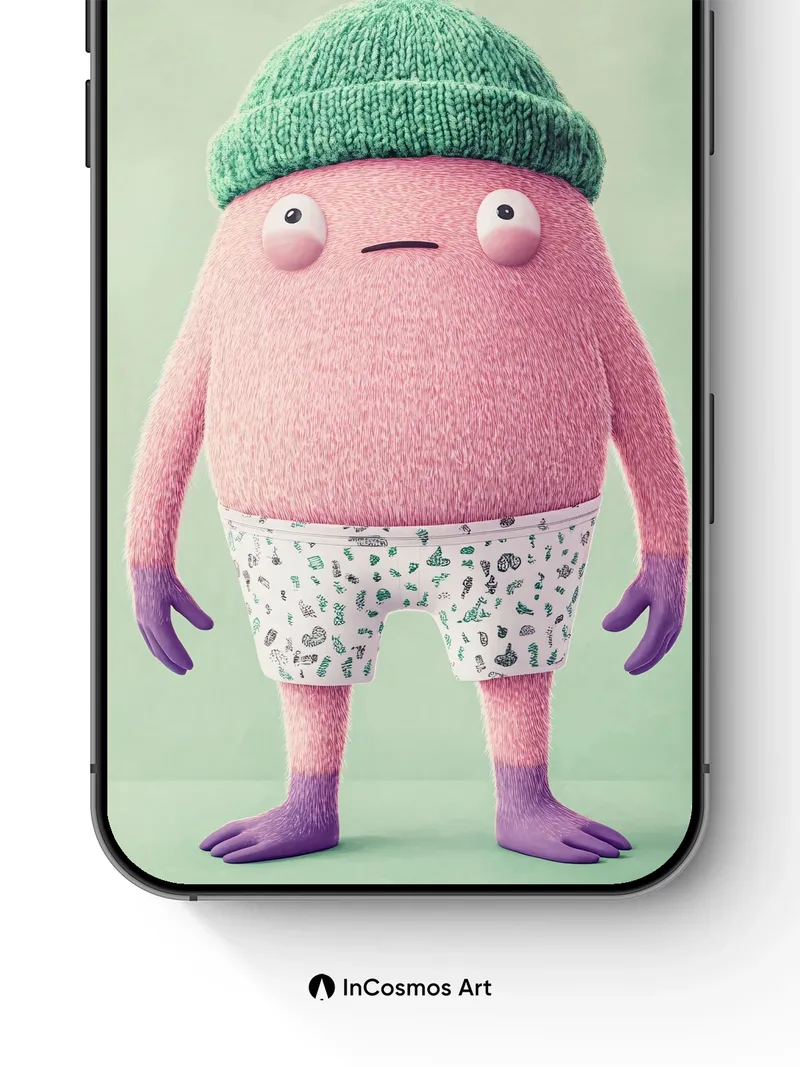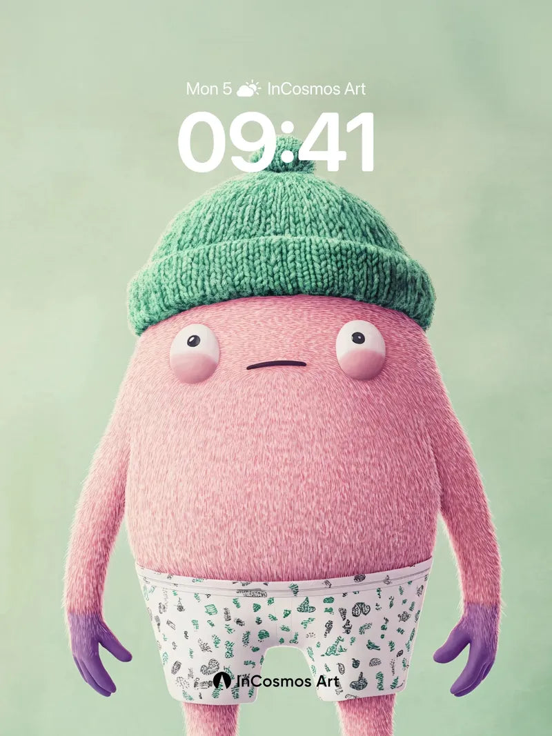 Whimsical Fluff Wallpaper with Knit Cap Charm