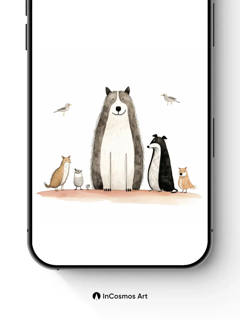 Whimsical Forest Gathering Wallpaper with Gentle Beasts