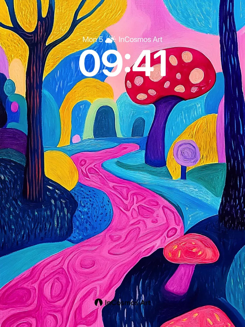 Whimsical Forest Wallpaper with Mushroom Pathways