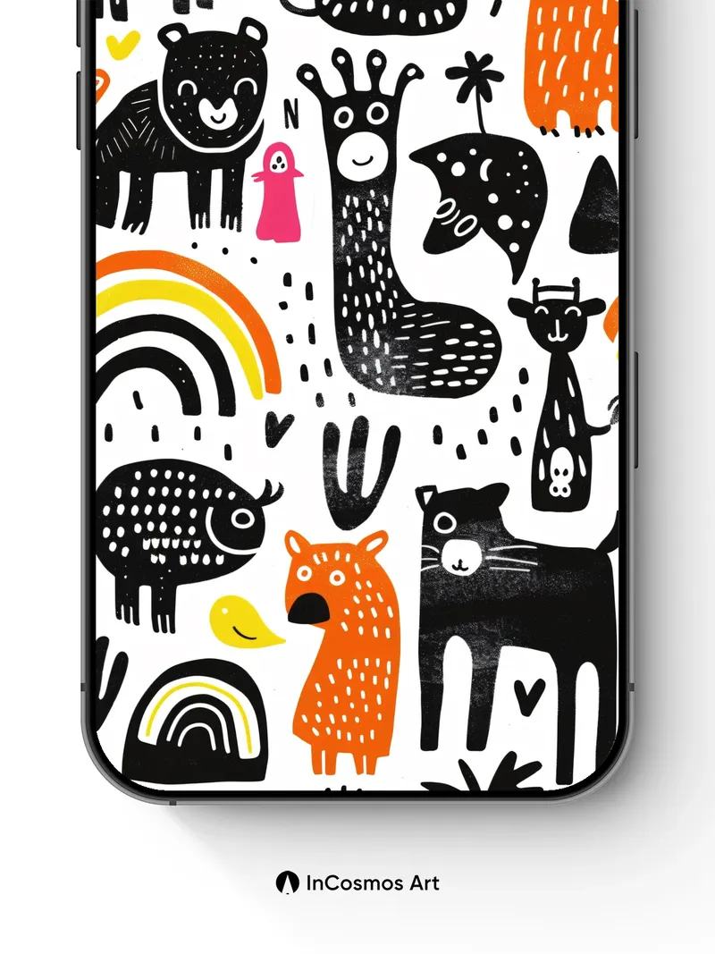 Did you know that the earliest known animal illustrations were etched into cave walls over 30,000 years ago? Here, ink dances across paper like a child’s wild dream, each creature drawn with bold strokes and dotted textures that pulse with life. The rainbow arcs shimmer not just in color but in memory—childhood joy made visible through simplified forms and rhythmic patterns.