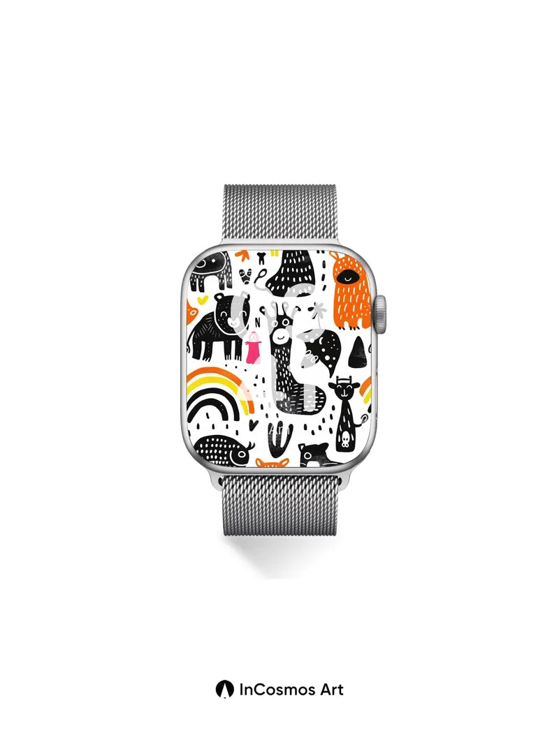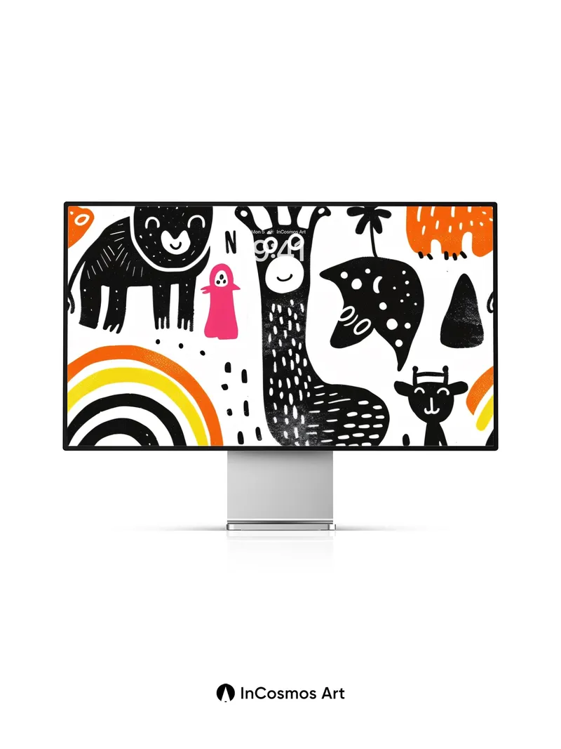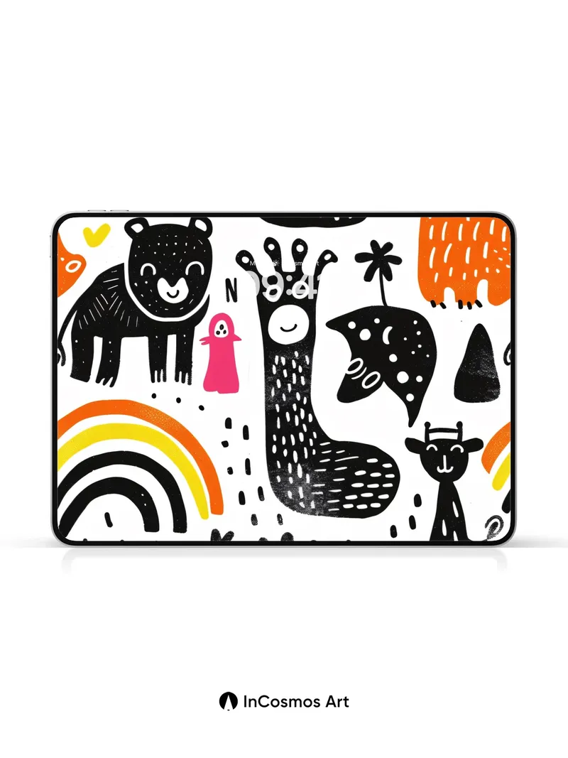 Debug product.metafields.custom.desc: Did you know that the earliest known animal illustrations were etched into cave walls over 30,000 years ago? Here, ink dances across paper like a child’s wild dream, each creature drawn with bold strokes and dotted textures that pulse with life. The rainbow arcs shimmer not just in color but in memory—childhood joy made visible through simplified forms and rhythmic patterns.