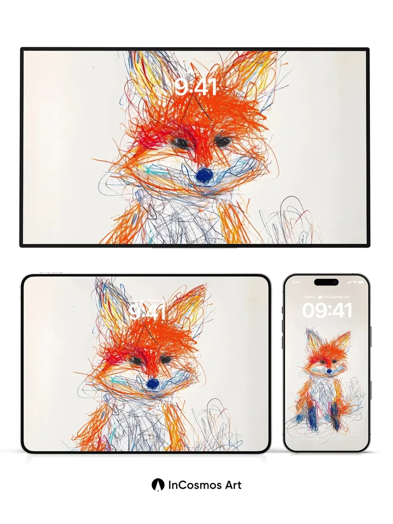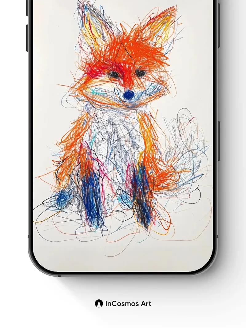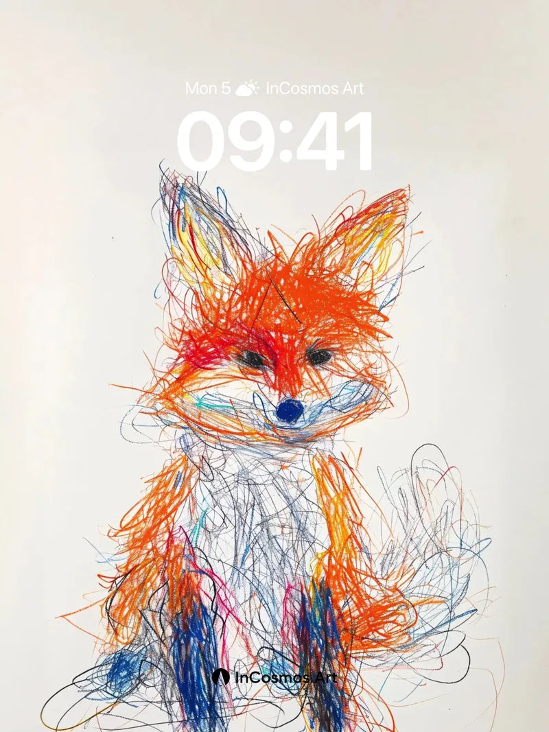 Whimsical Fox Scratch Wallpaper with Color Chaos