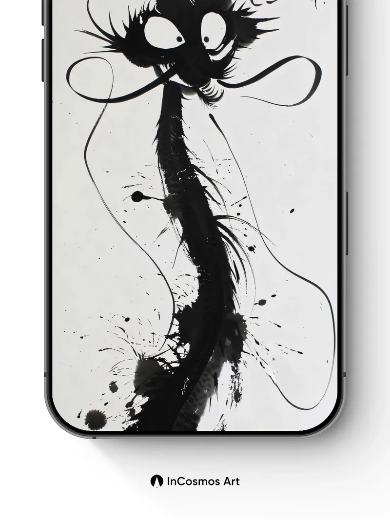 Whimsical Ink Dragon Wallpaper with Playful Lines
