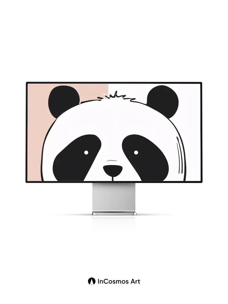 Whimsical Panda Wallpaper with Soft Pastel Divide