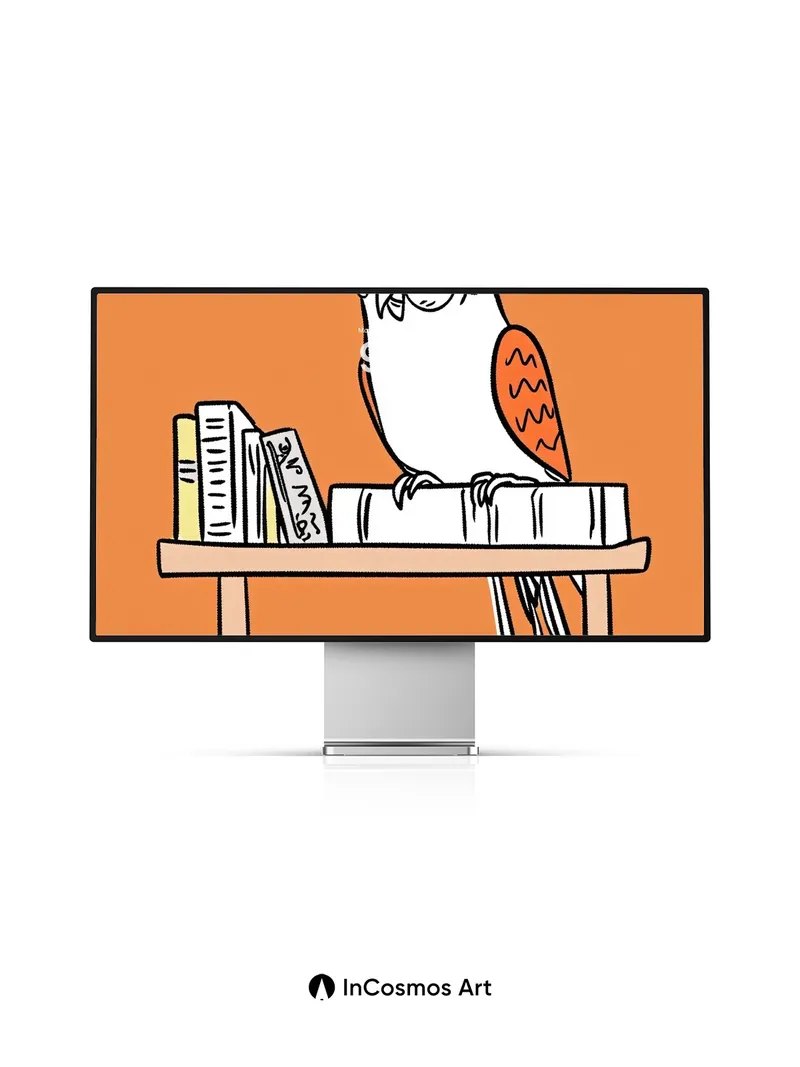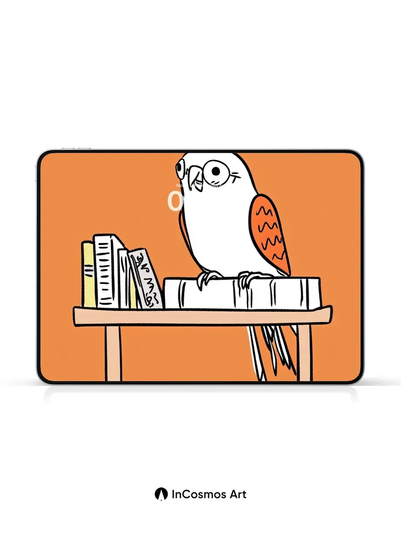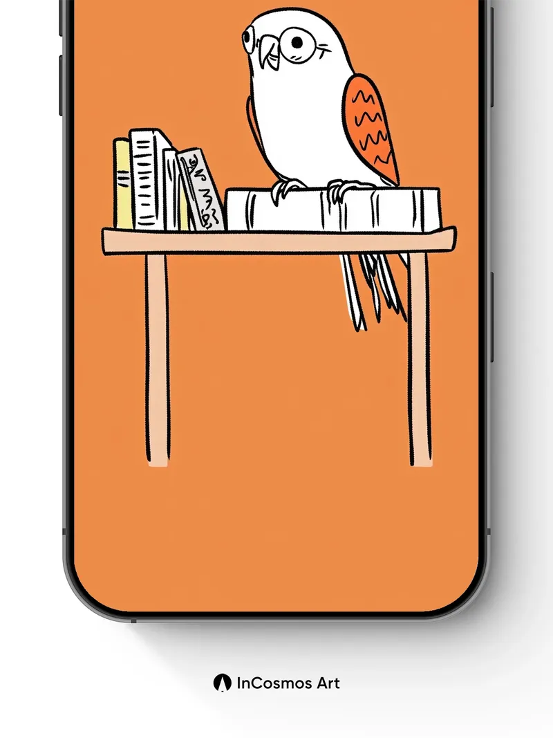 Whimsical Parrot Wallpaper with Bookshelf Charm