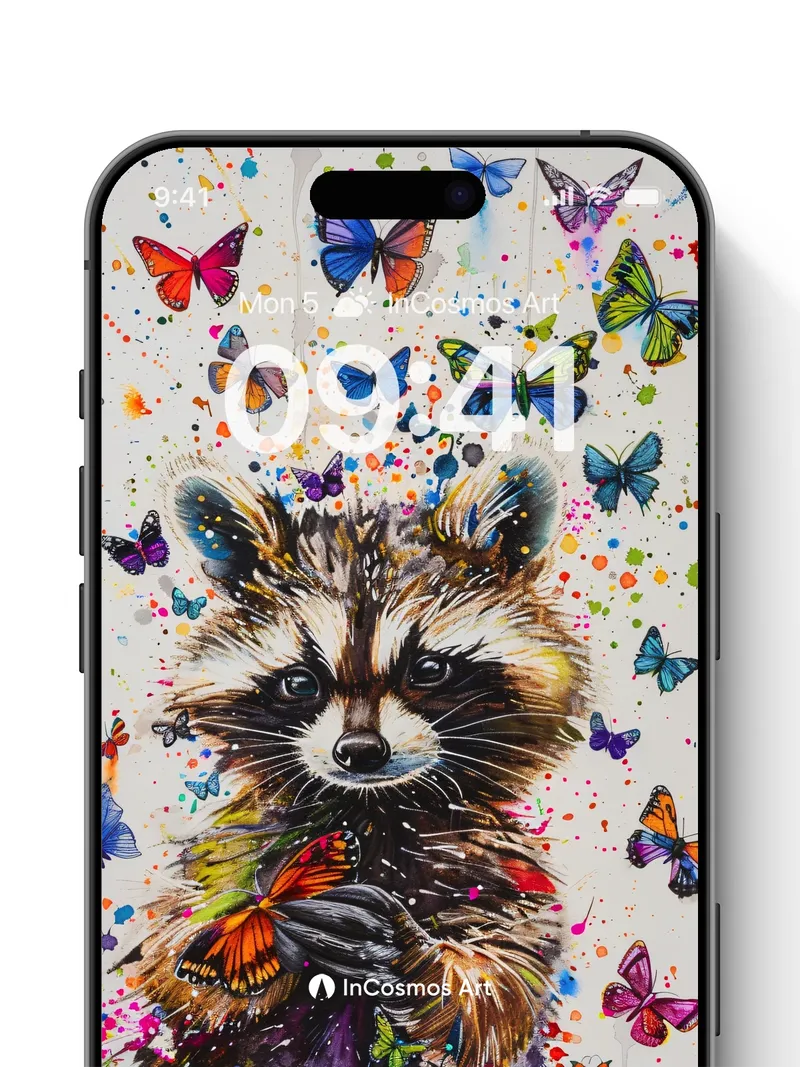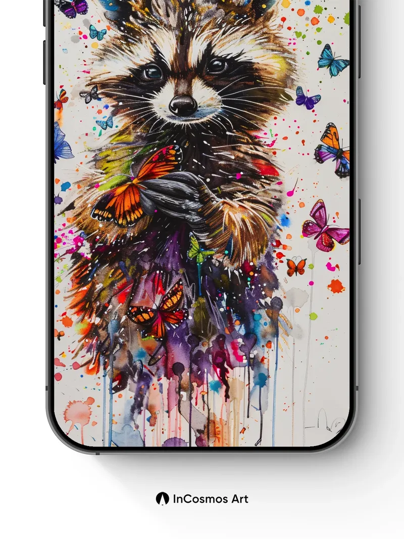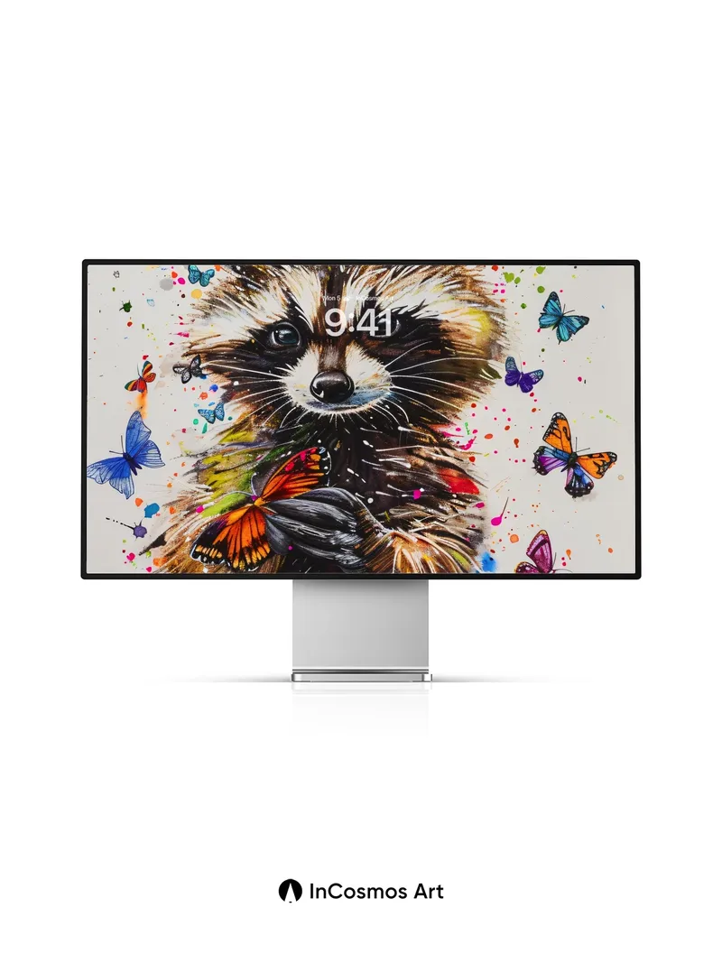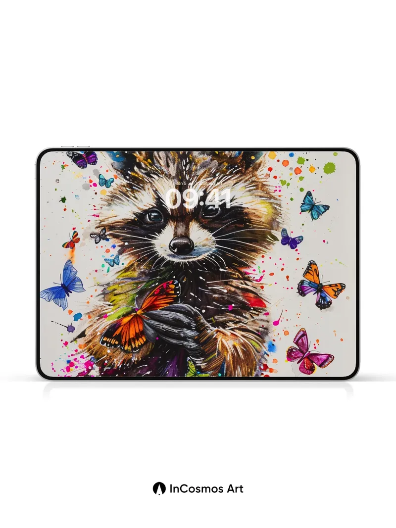 Whimsical Raccoon Wallpaper with Butterflies in Flight