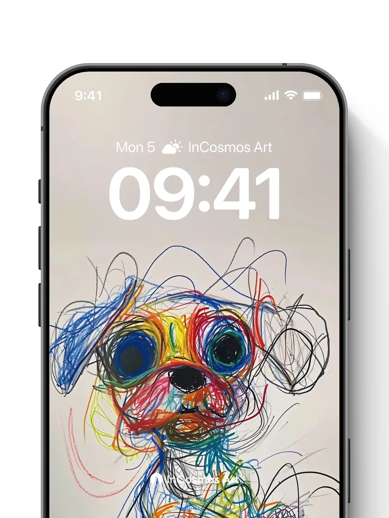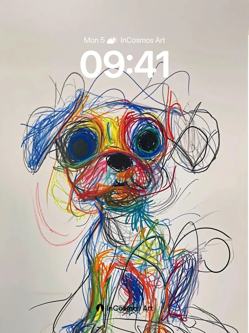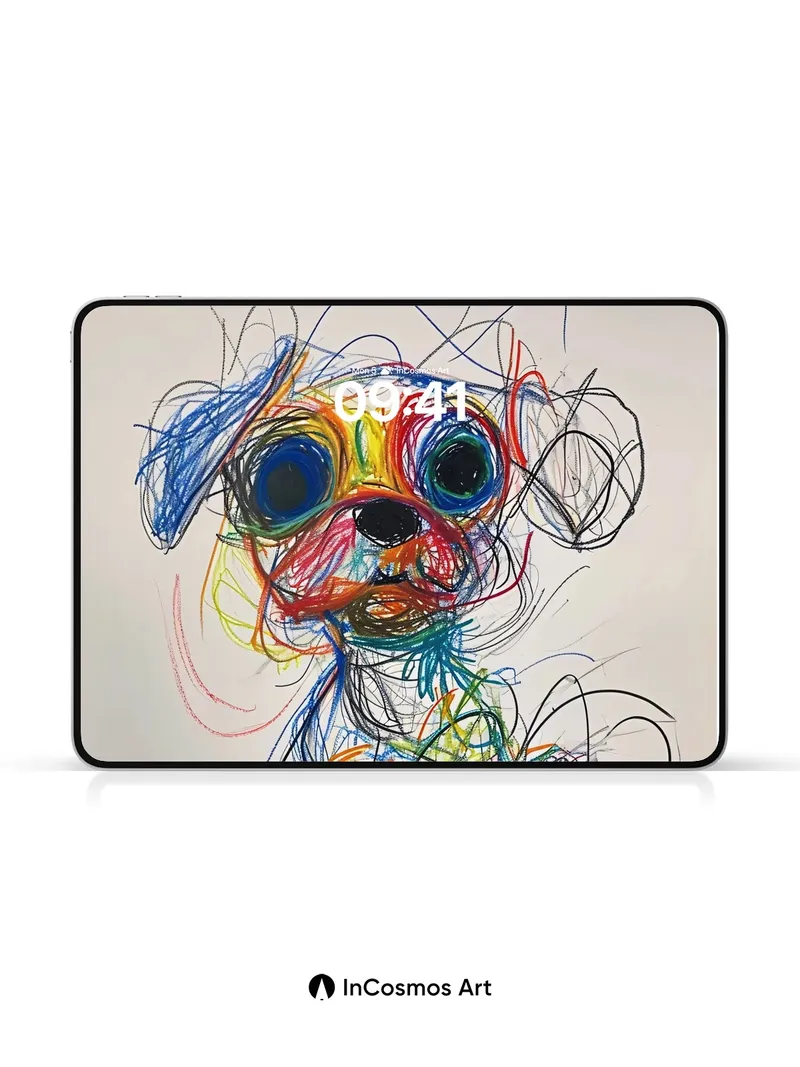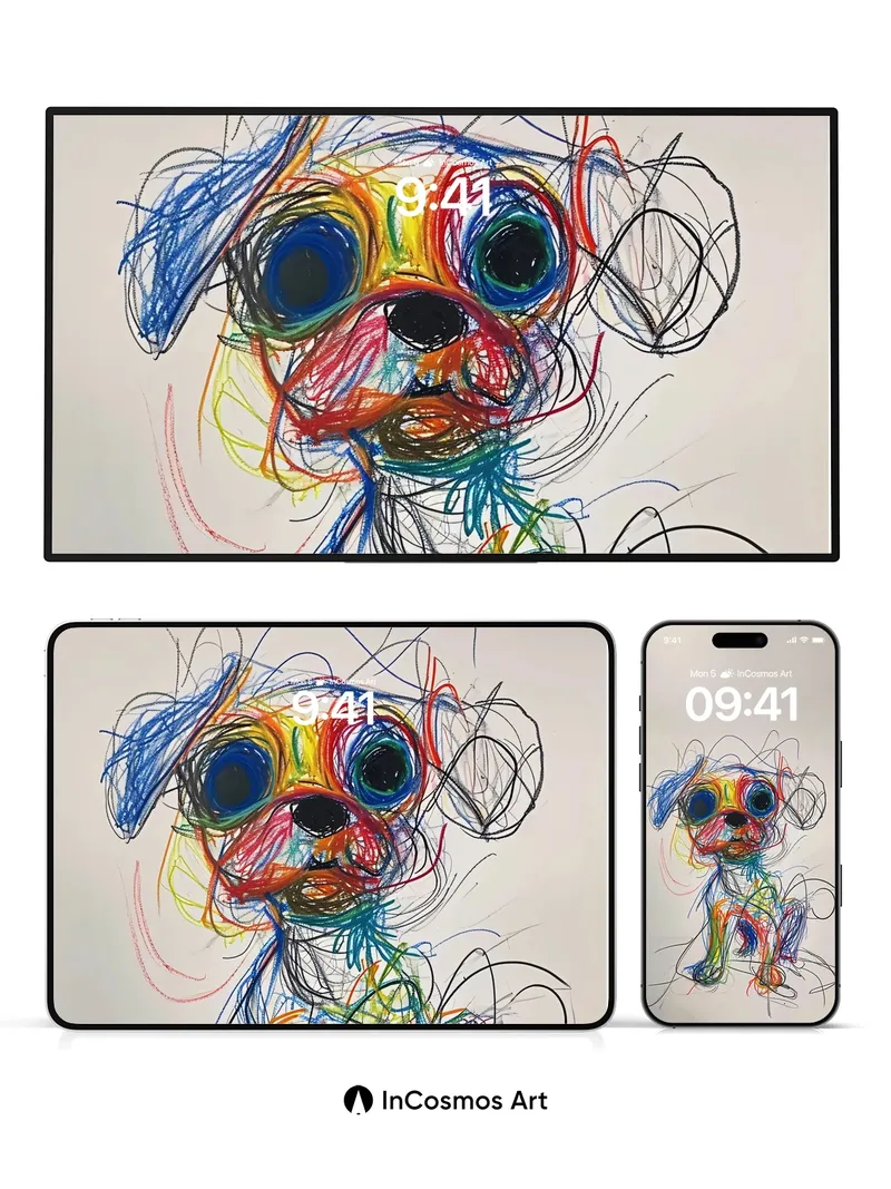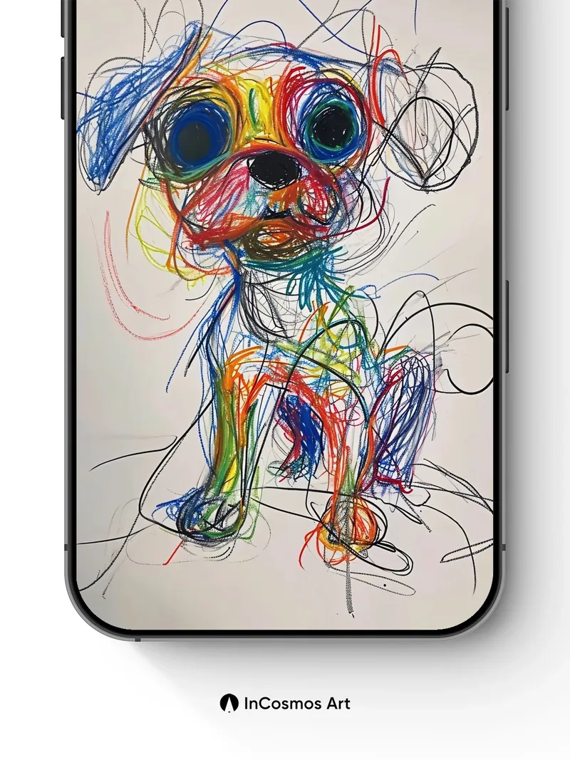 Whimsical Scribble Dog Wallpaper with Rainbow Chaos